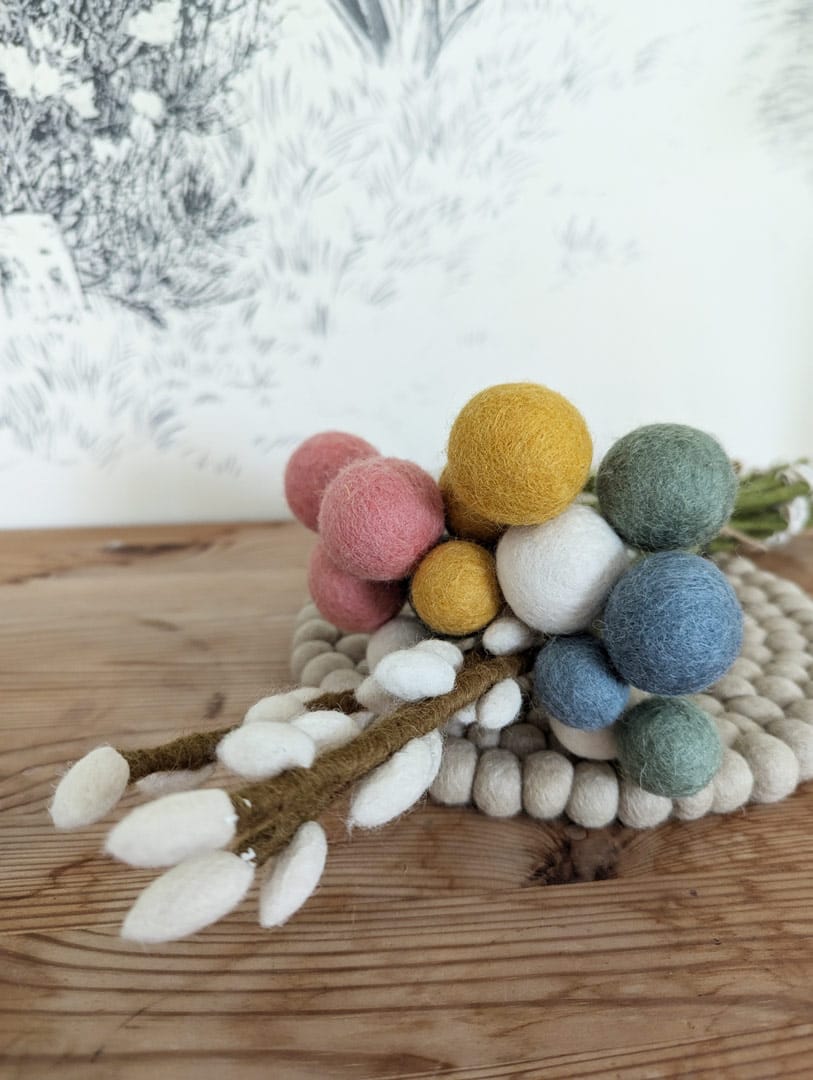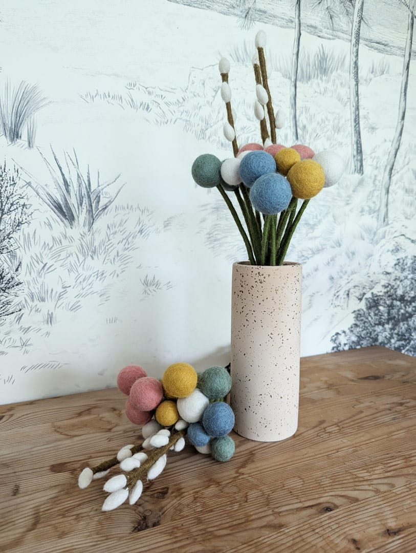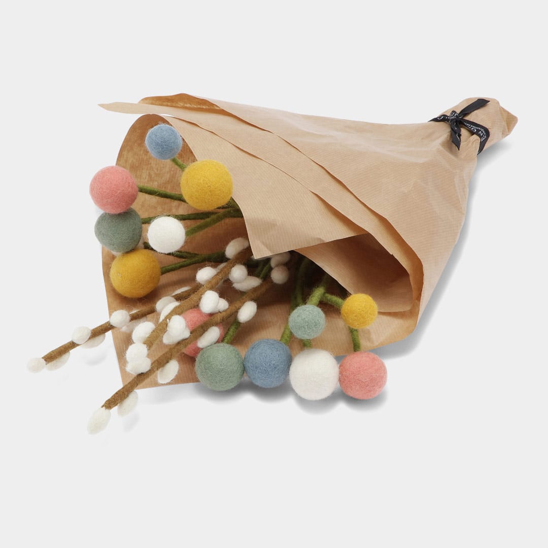 Fabriquées en feutre de laine, ses pièces dégagent une beauté douce et chaleureuse. Cette matière naturelle et résistante garantit la durabilité du bouquet Jayanti, qui fleurira votre maison de nombreuses années sans se dégrader.