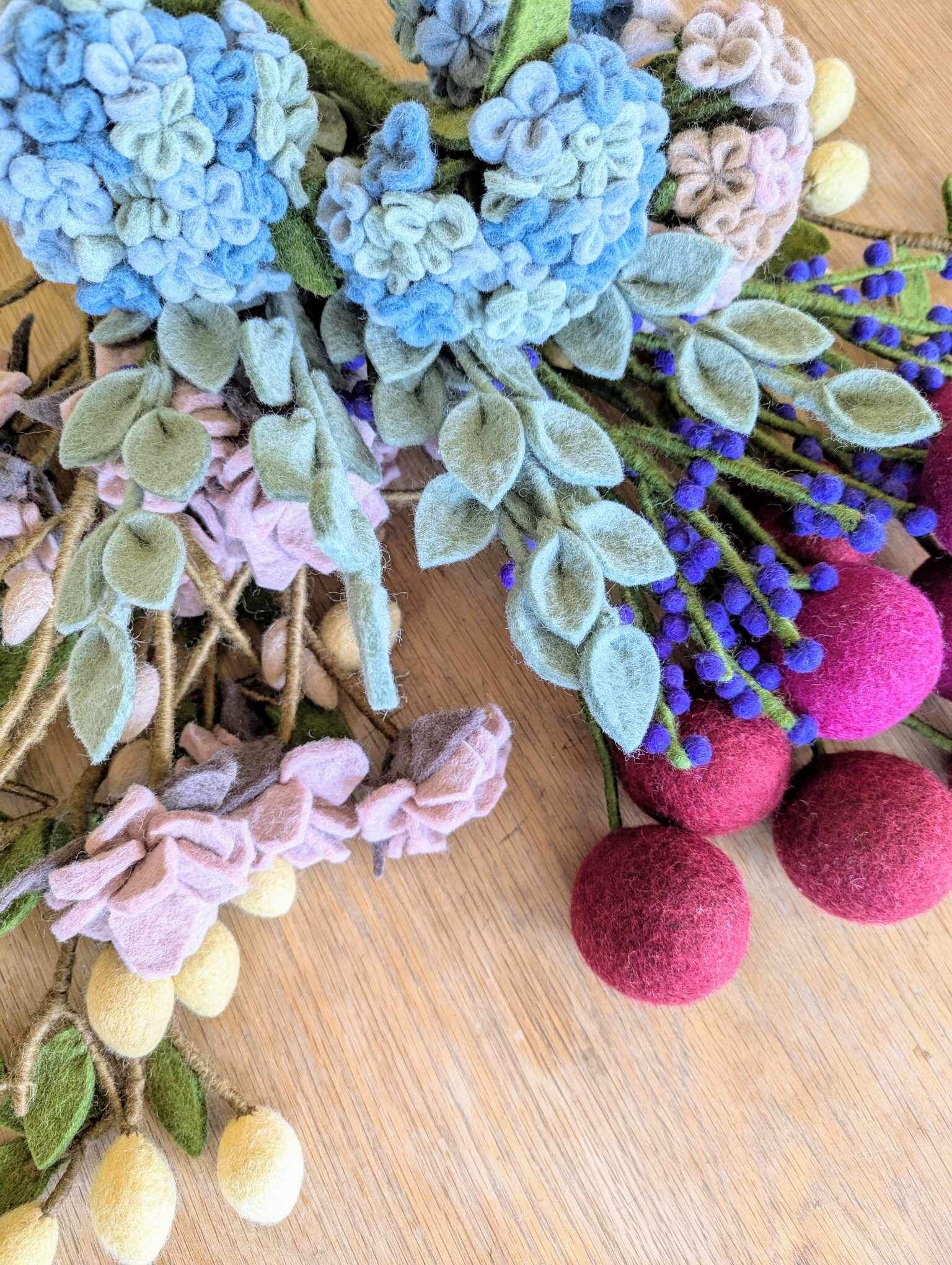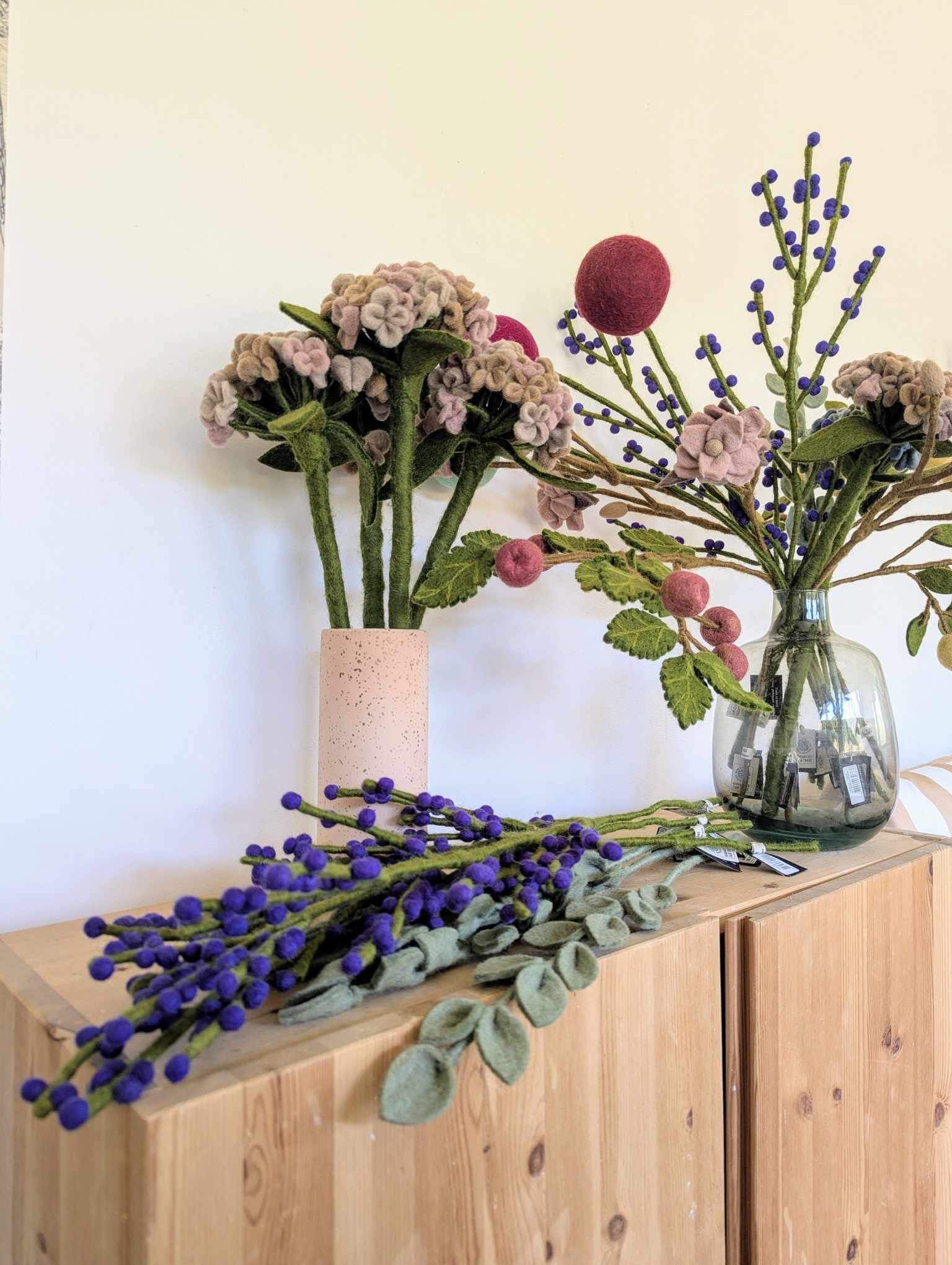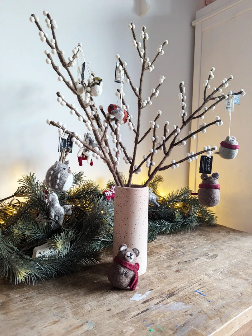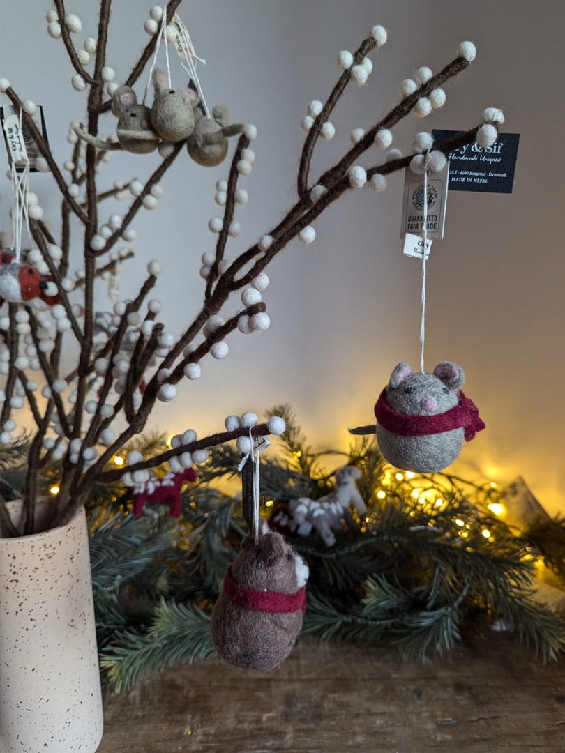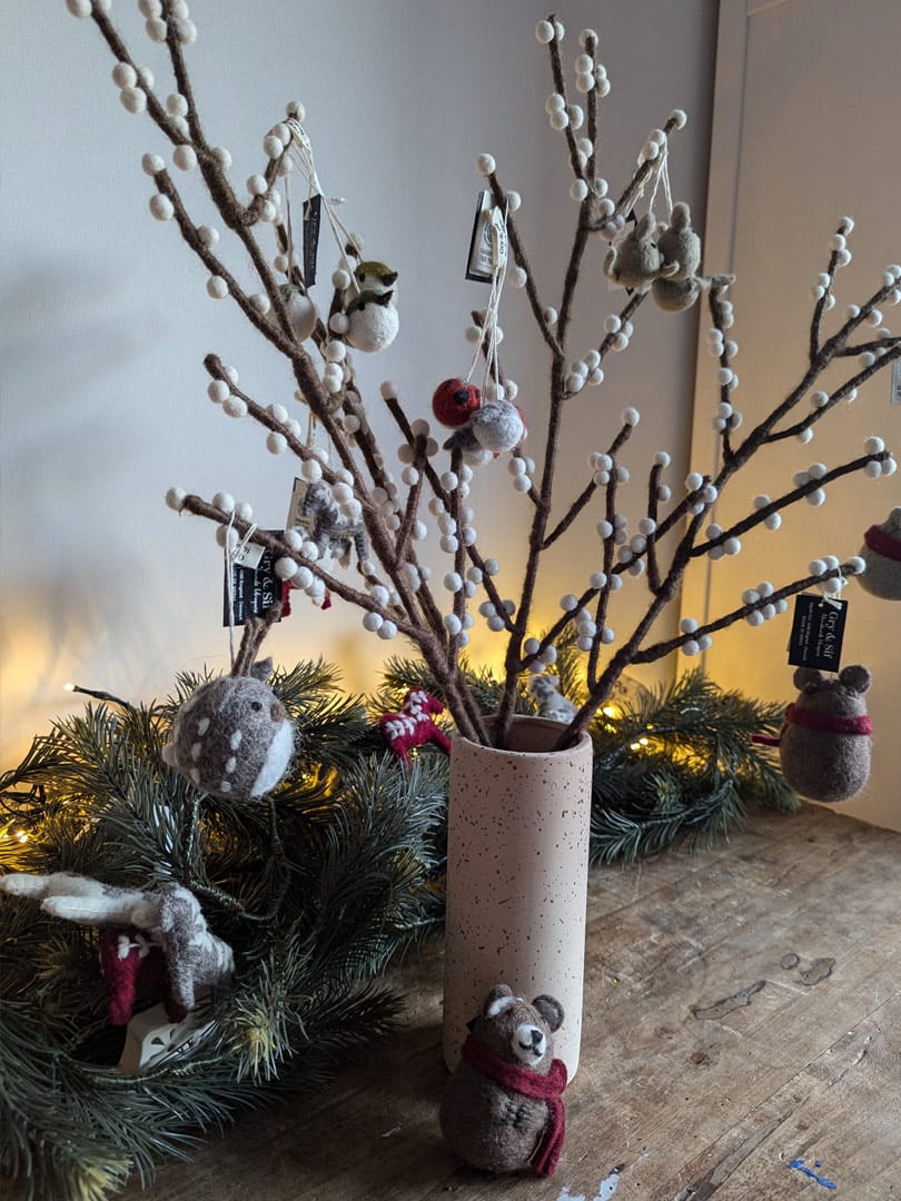 Comme l’ensemble des créations Gry & Sif, cette branche de baies est entièrement fabriquée à la main au Népal, dans le cadre d’un partenariat équitable WFTO. Chaque élément se compose de laine de mouton issue d’élevages responsables. Derrière chaque branche, se cache donc le geste précis et patient d’une artisane pour donner naissance à un objet unique et porteur de sens. La branche de baies en feutre constitue une alternative durable et poétiques aux fleurs éphémères.