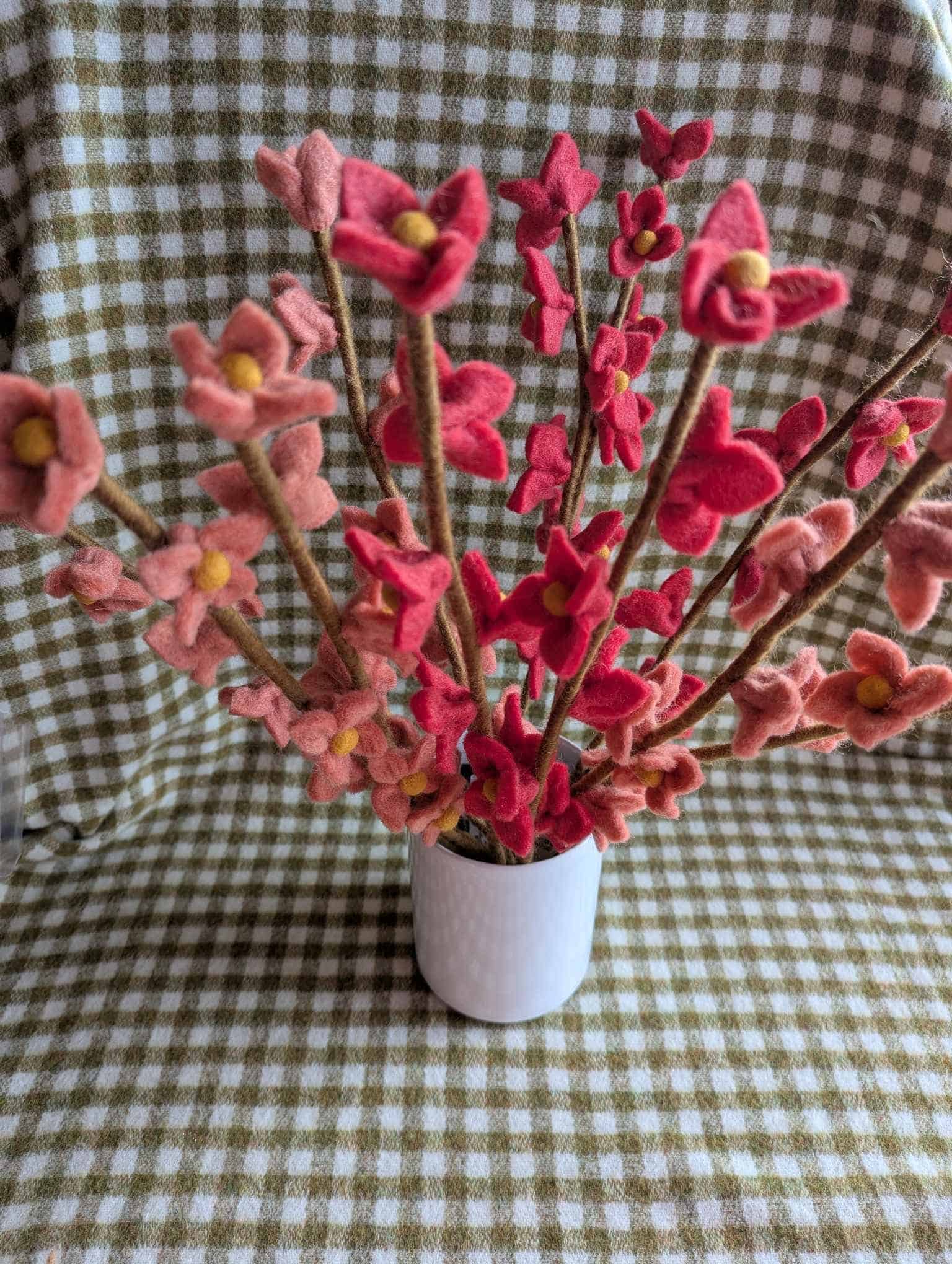 La tige de fleurs en feutre couleur Melon de Gry & Sif porte une multitude de fleurs délicates. Elle apporte une note joyeuse et vive dans votre décor intérieur, en imitant la nature avec sobriété.