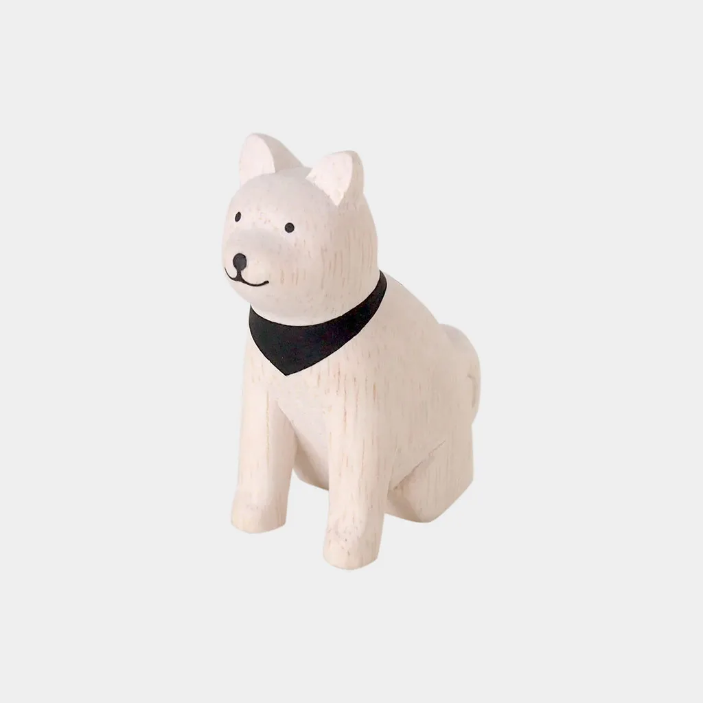 Déposé seul sur le coin d’un bureau, ou au milieu d’une collection bien fournie, cet Akita lisse et doux contribue à la création d’une atmosphère intérieure apaisante et rassurante. La teinte naturelle du bois, combinée à une peinture noire élégante, en font une pièce totem intemporelle.