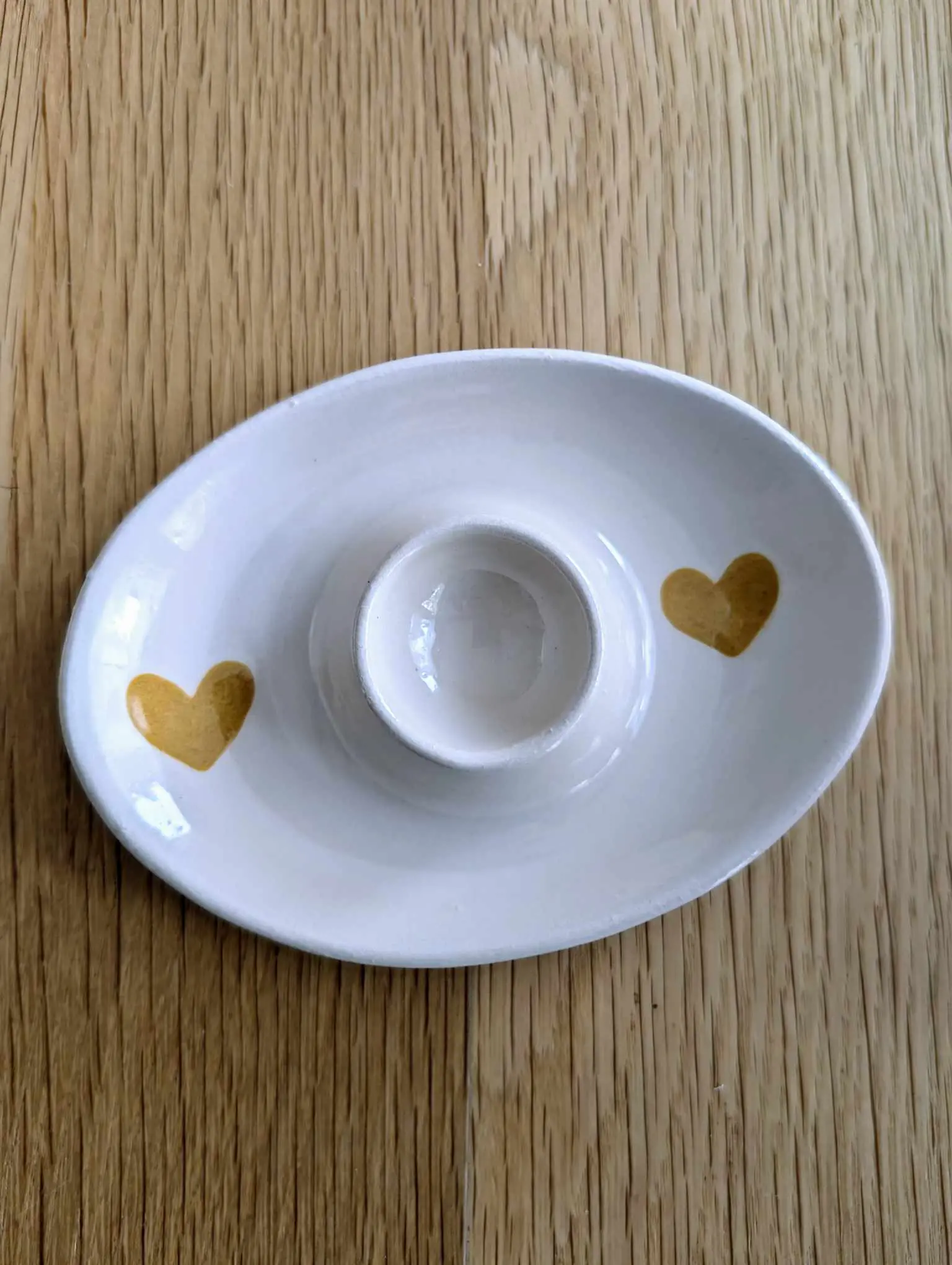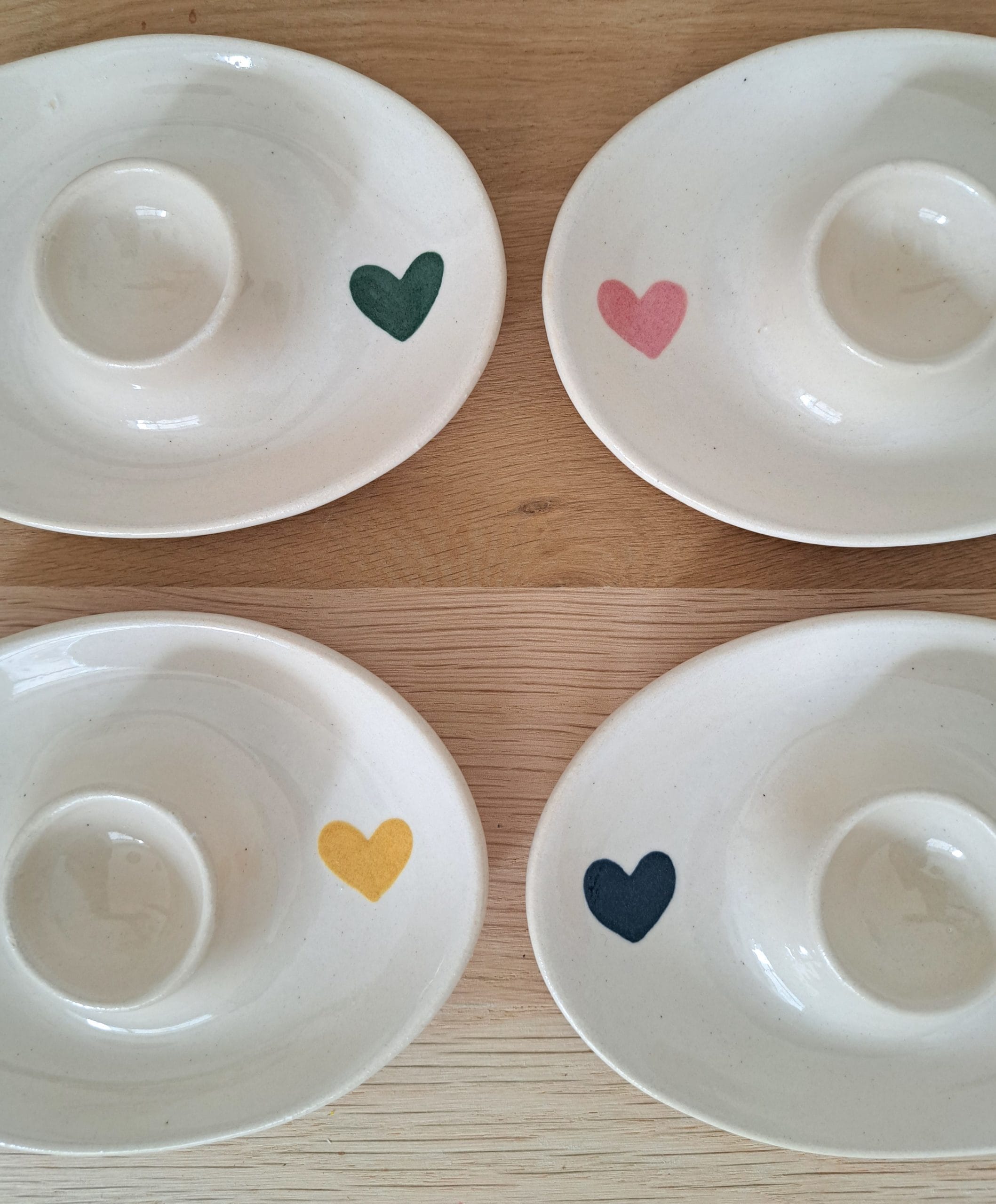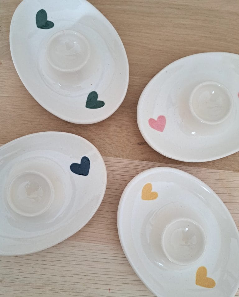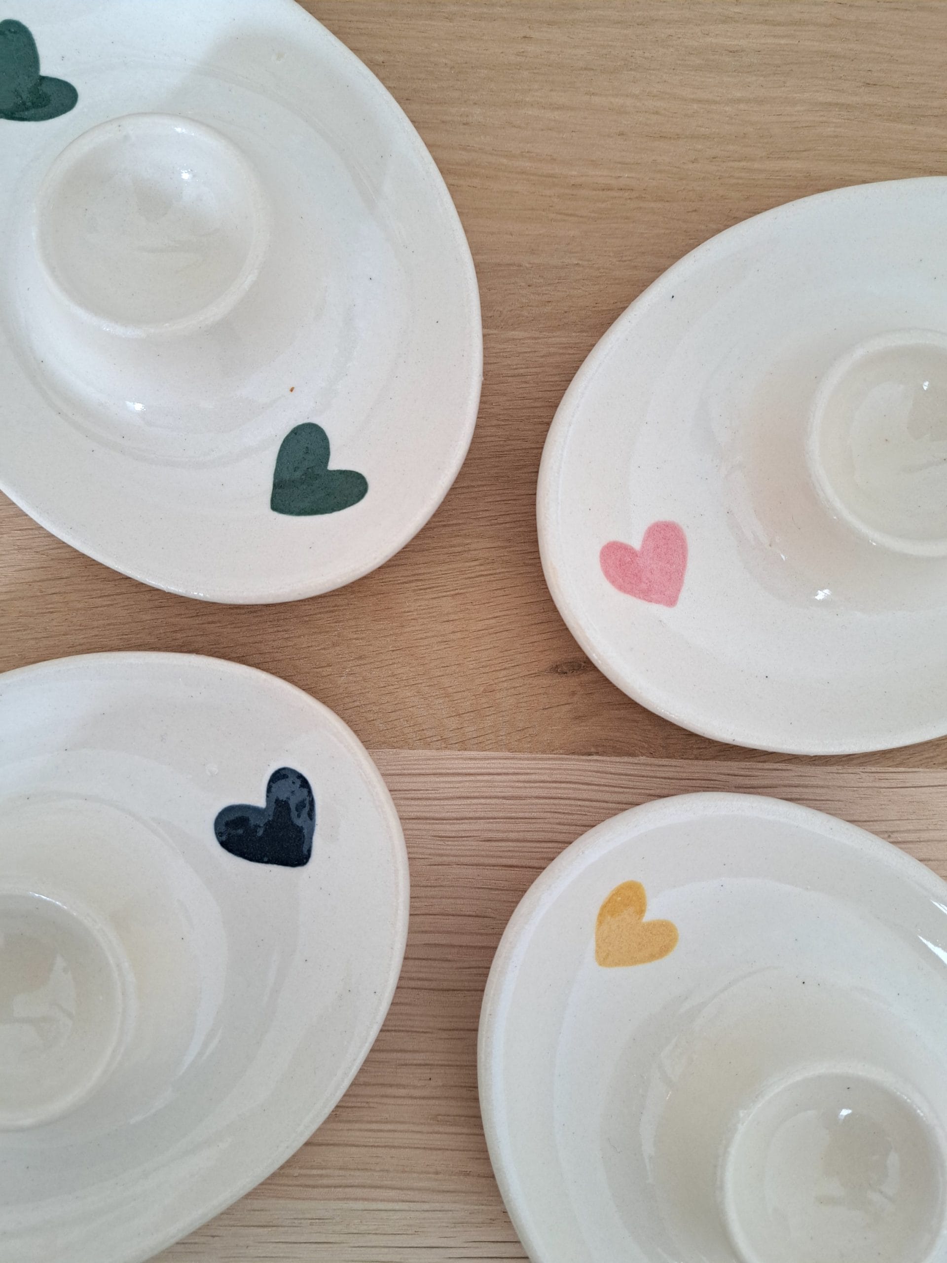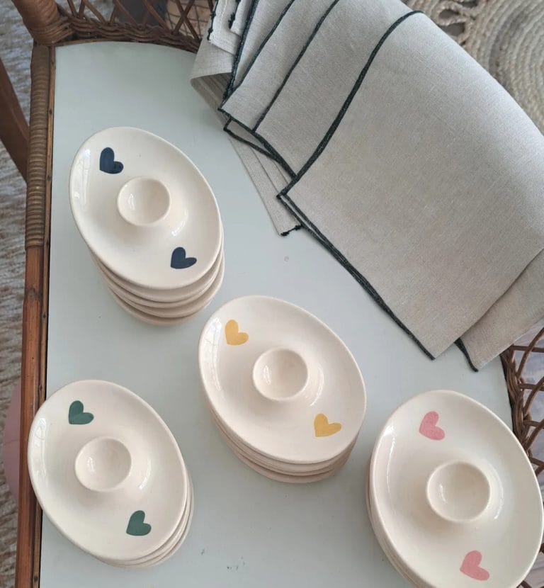 Ce coquetier peint à la main, fabriqué en France, est un véritable coup de cœur! Avec ses petits cœurs délicatement dessinés, il apporte une touche vintage et pleine de charme à vos petits-déjeuners. Parfaitement conçu pour accueillir un œuf à la coque et ses mouillettes de pain frais, il vous replongera dans l’esprit des repas simples mais gourmands. Disponible en jaune, chaque pièce est unique. Un must-have pour égayer vos matinées !