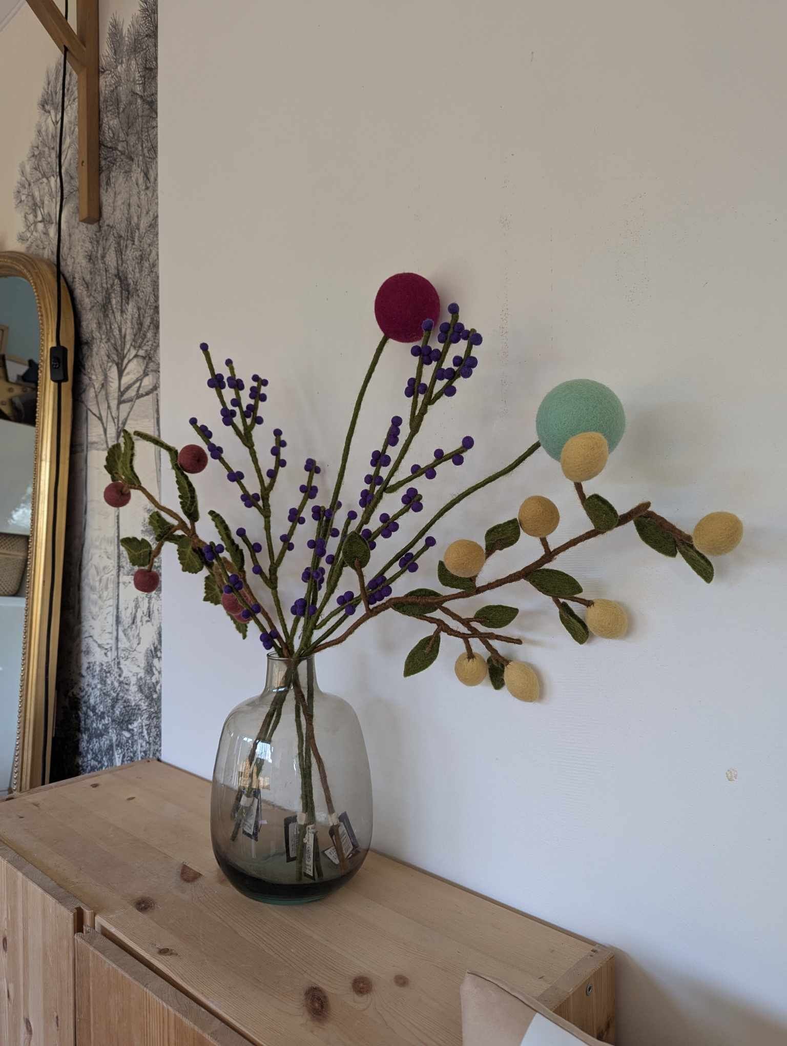 Ces fleurs boules en feutre de laine XL Gry & Sif sont réalisées de manière artisanale, ce qui leur confère un charme authentique et une texture unique. La laine utilisée est soigneusement feutrée pour garantir une solidité et une durabilité exceptionnelles. De plus, chaque fleur est confectionnée à la main, apportant une touche de personnalisation et de soin dans le processus de fabrication. Ce travail méticuleux donne naissance à des objets de décoration qui se distinguent par leur qualité et leur caractère.
