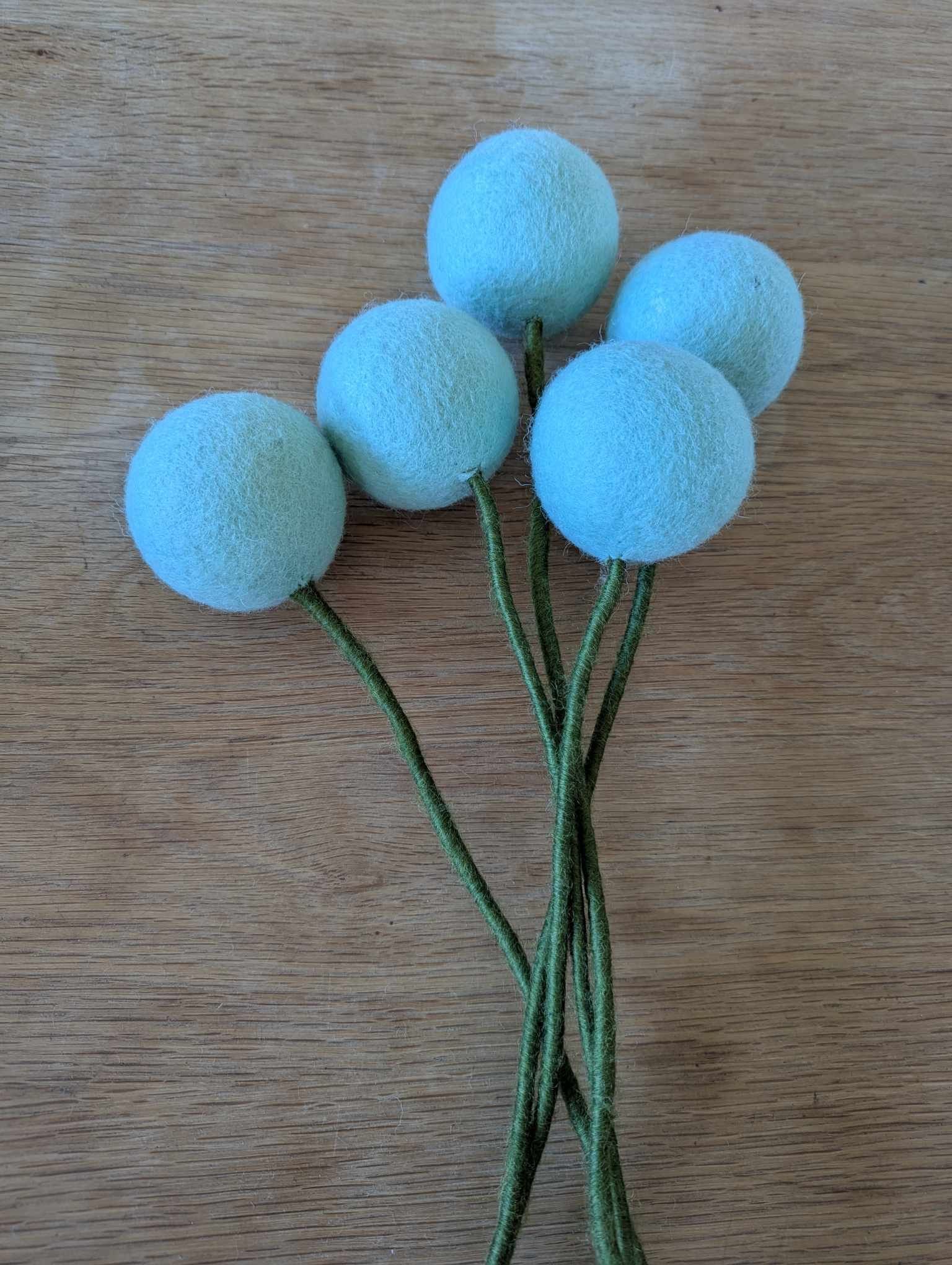 La couleur eucalyptus de ces fleurs boules en feutre de laine est douce et apaisante, elle est parfaite pour créer une ambiance calme et relaxante dans n’importe quel espace. Le vert eucalyptus se marie particulièrement bien avec des tons neutres, mais aussi avec des couleurs plus vives.
