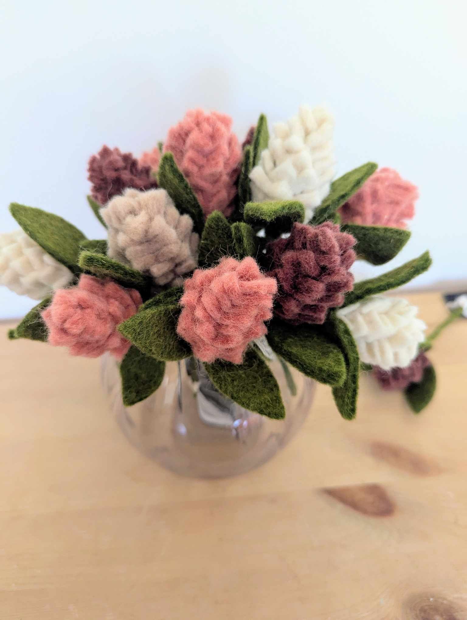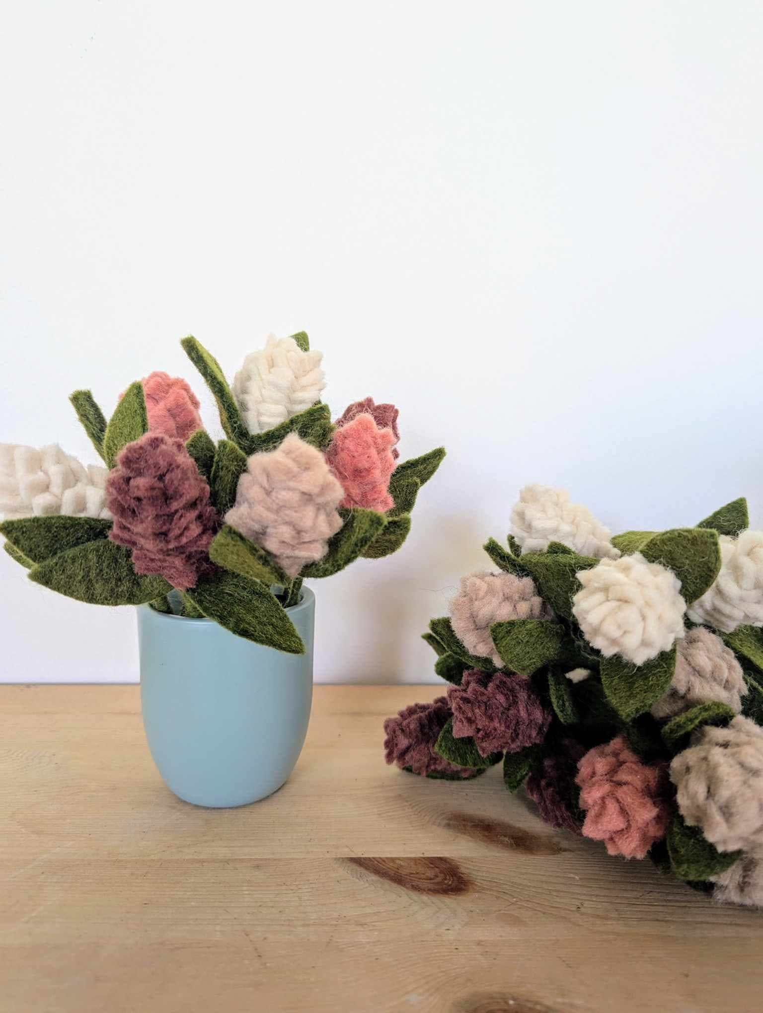 Fabriquée à partir de laine feutrée naturelle, cette fleur conserve son aspect au fil du temps, sans se faner ni se déformer. Sa matière souple apporte une touche de douceur et de chaleur, dans un petit vase, un joli verre ou simplement déposée au centre de la table. Elle offre une alternative unique et durable aux fleurs fraîches, parfaite pour un intérieur poétique et sans entretien.