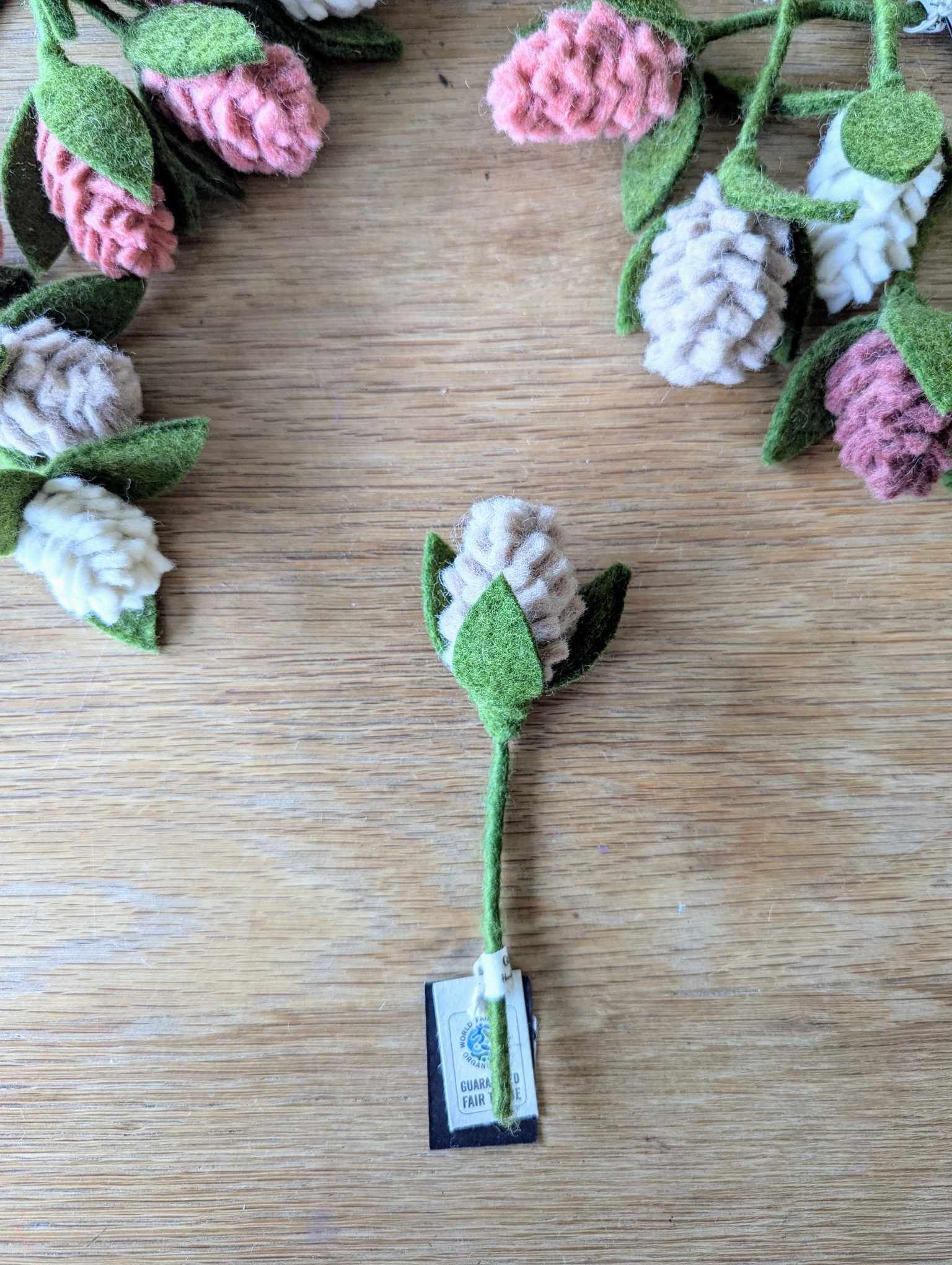 La fleur d’artichaut vieux rose en feutre offre une alternative poétique et durable aux fleurs fraîches. Sa teinte rose poudré évoque la douceur, la tendresse et l’élégance discrète. Réalisée à la main au Népal à partir de laine de mouton feutrée, chaque pièce est unique. Grâce à sa tige souple, elle s’intègre facilement à toutes vos créations florales, que ce soit en solo ou en bouquet. Elle se marie merveilleusement avec d’autres fleurs en feutre de teintes naturelles ou pastel.