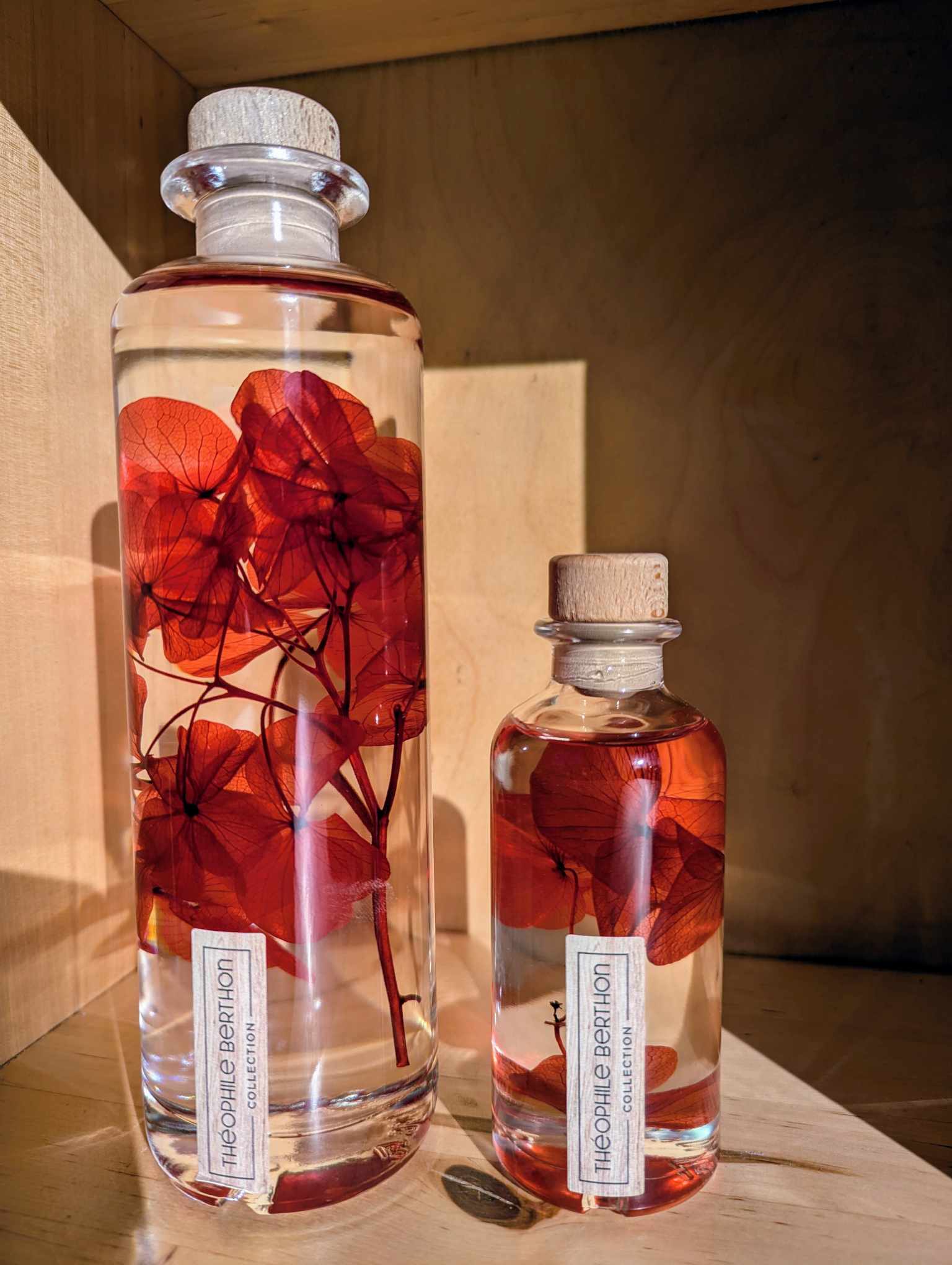 Dans ses ateliers du Sud de la France, la marque Théophile Berthon développe son Herbarium unique. Pour ce modèle, l’Hortensia rouge passion est mis en valeur dans un flacon d’apothicaire de 12 cm de haut. La fleur immergée est insérée à la main dans un liquide de préservation translucide. Son rouge flamboyant apporte une nouvelle dimension à votre décoration et y dépose une touche naturelle.