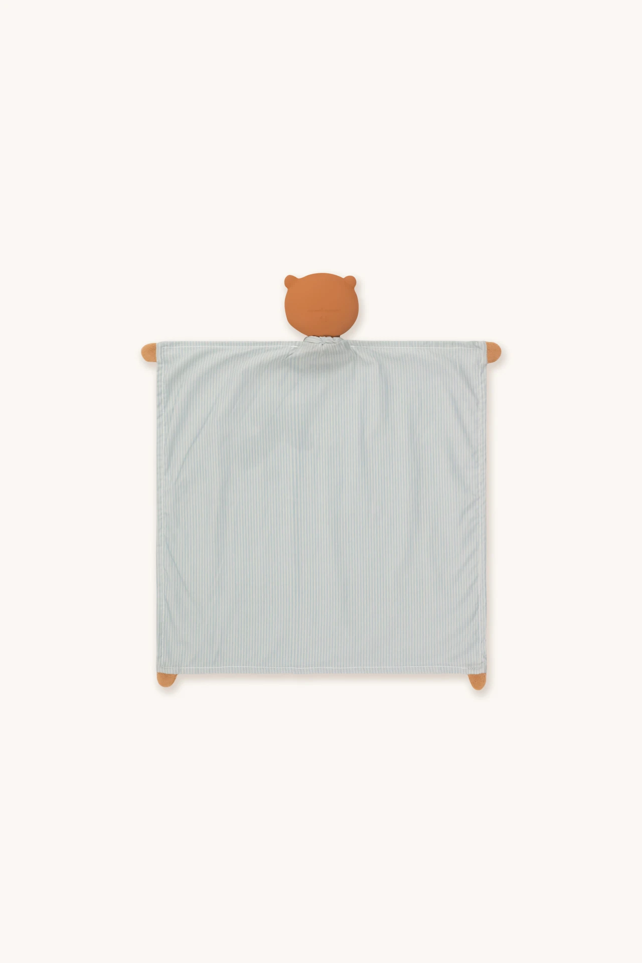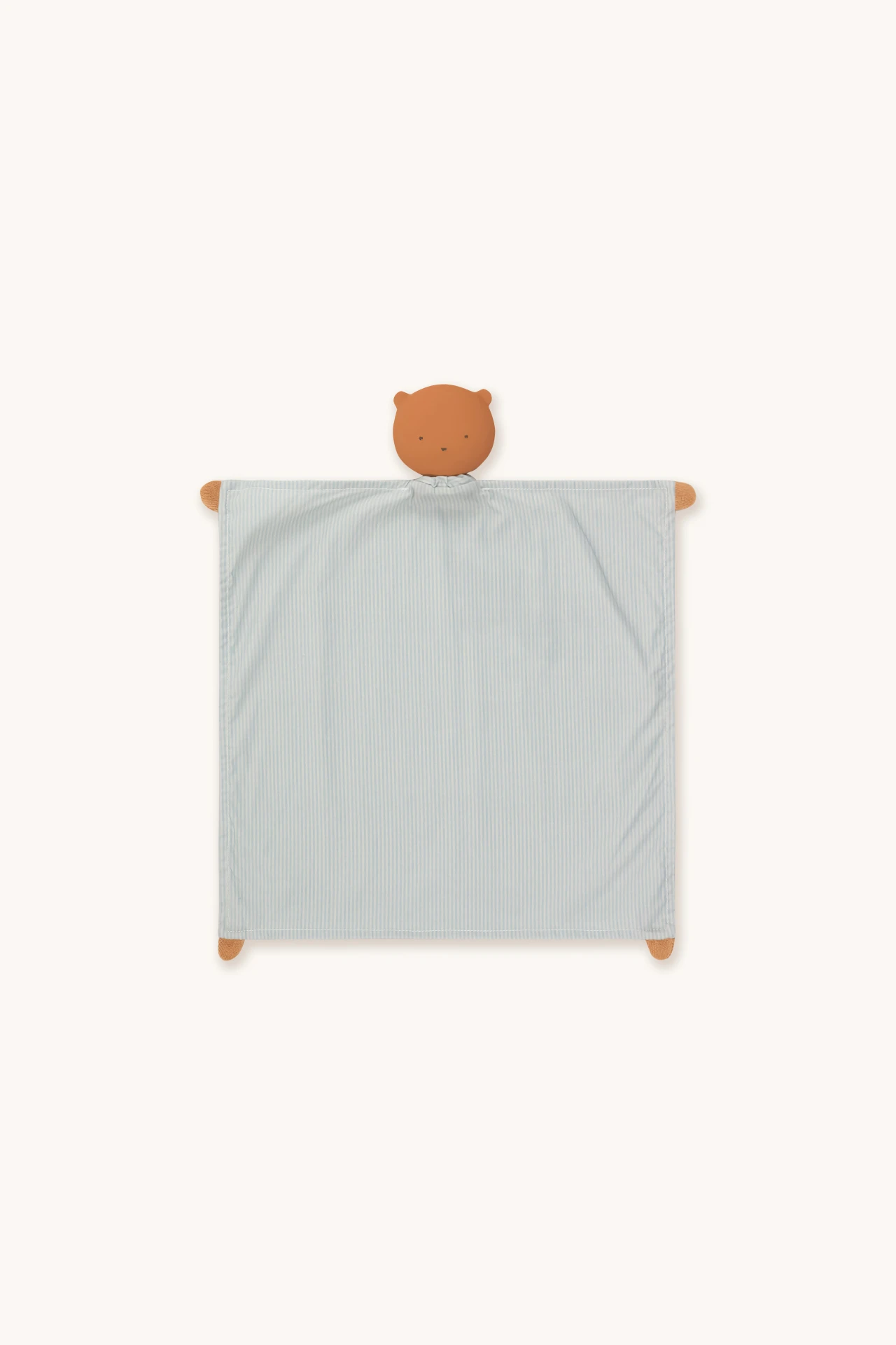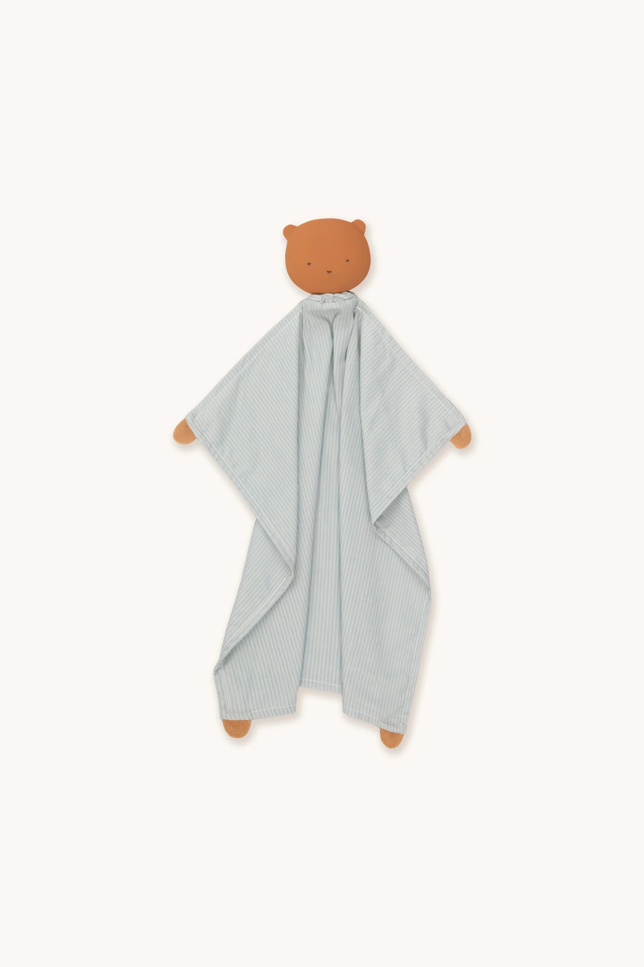 Doudou ours Gommu, jouet écologique et sûr en coton rayé bleu et blanc.Doudou ours Gommu – We are Gommu