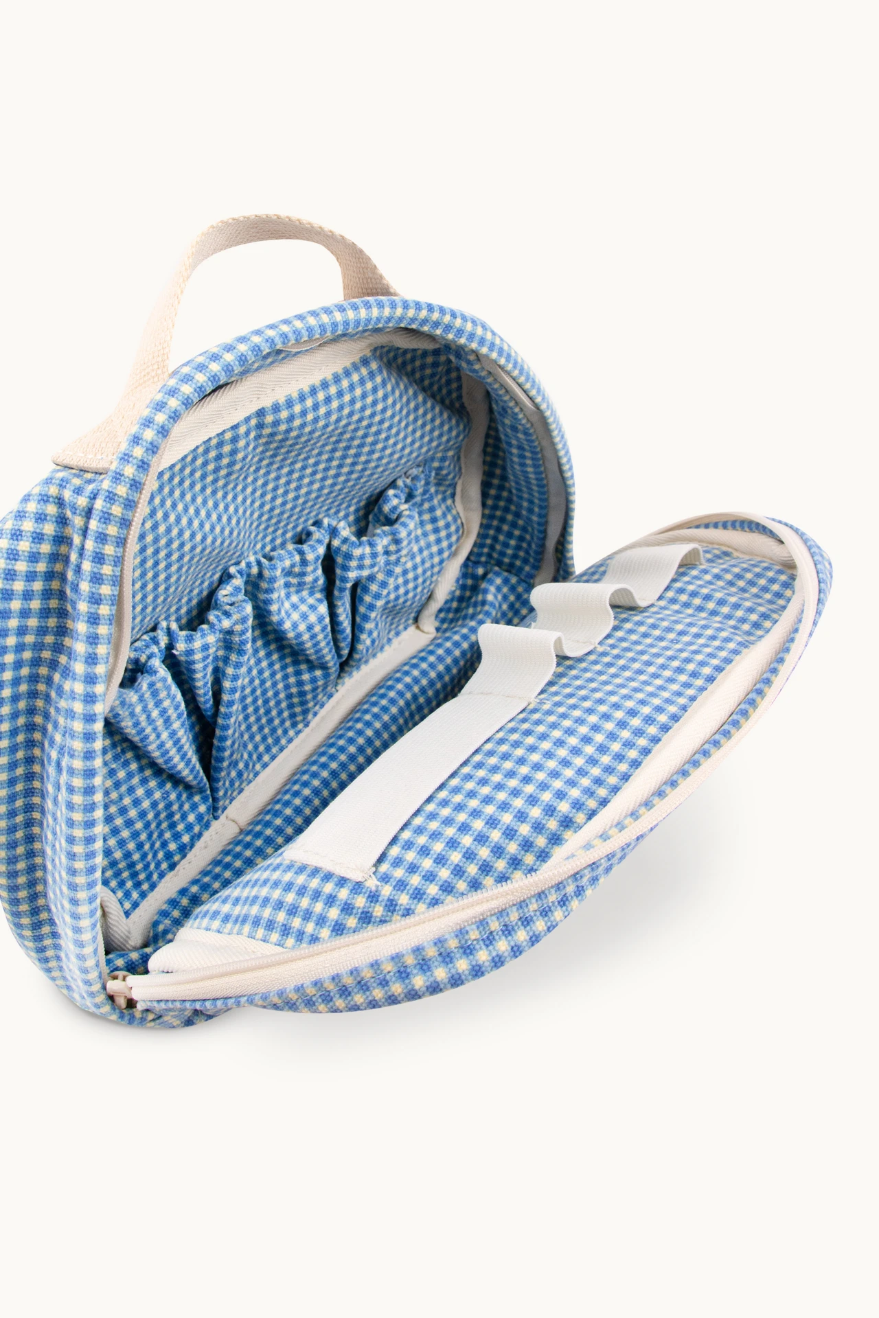 Cette pochette Vichy est idéale pour ranger et transporter un Gommu Pocket et tous ses accessoires. Elle est confectionnée dans un beau tissu en coton à l’imprimé Vichy rétro, en bleu et blanc. Le bébé, son nounours, son biberon et son petit oreiller trouve tous leur place dans les emplacements prévus pour les accueillir.