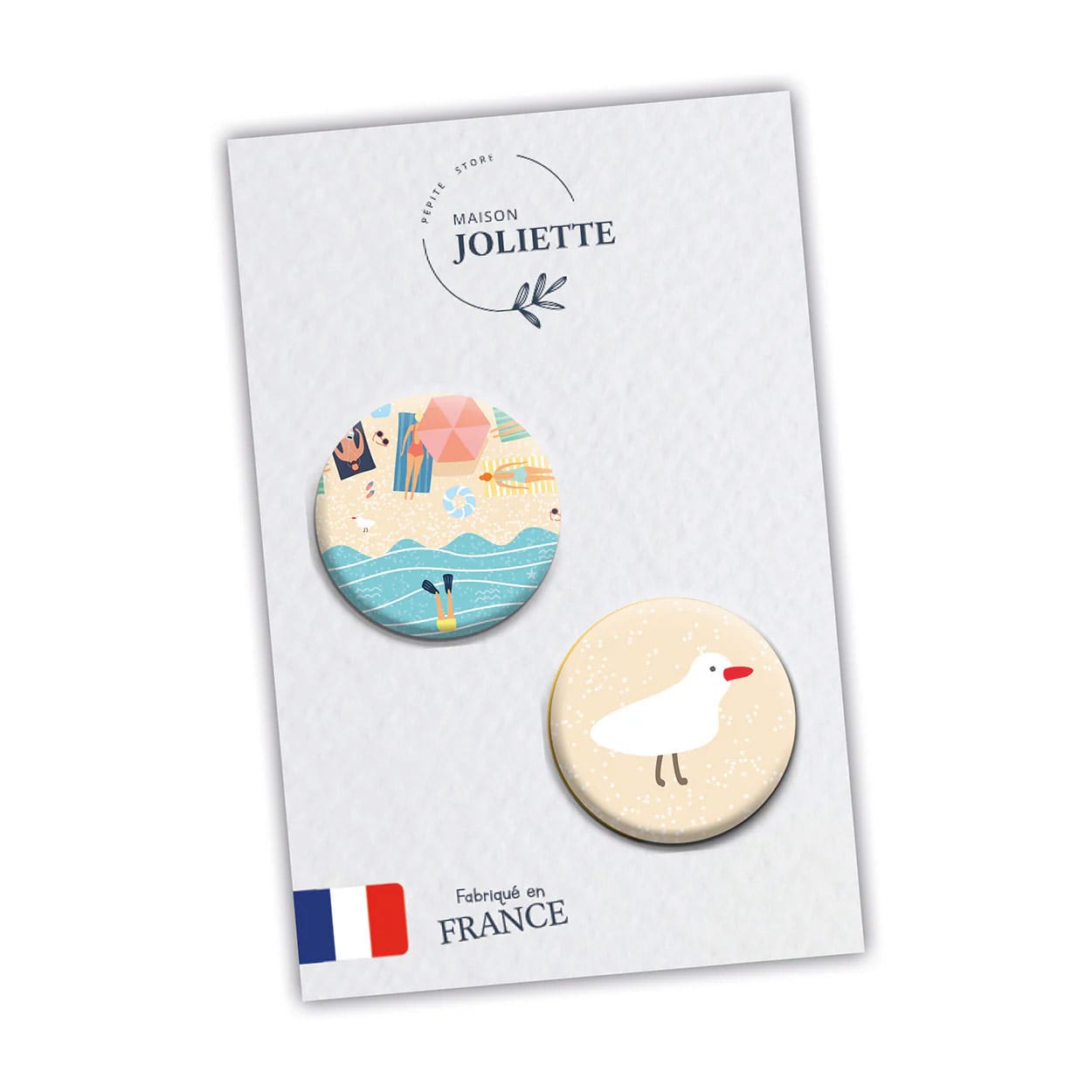 Décorez votre réfrigérateur ou n’importe quelle surface métallique de 2 magnets ronds Chill & Plouf. Ces aimants de 32 mm sont décorés d’illustrations colorées, signées Maison Joliette :