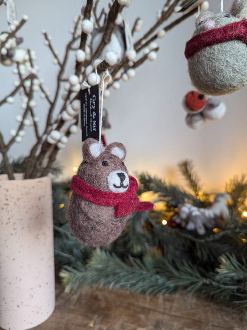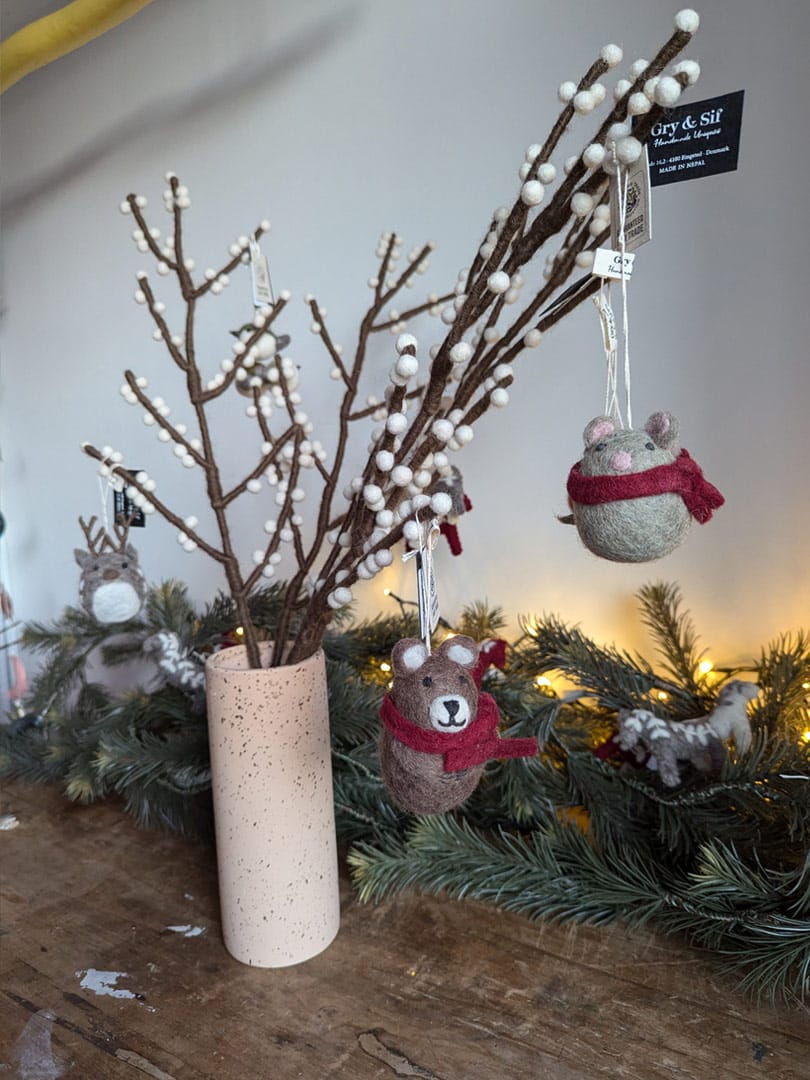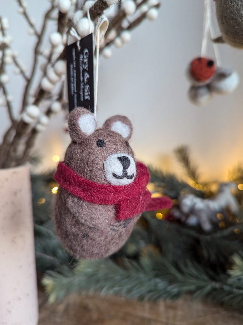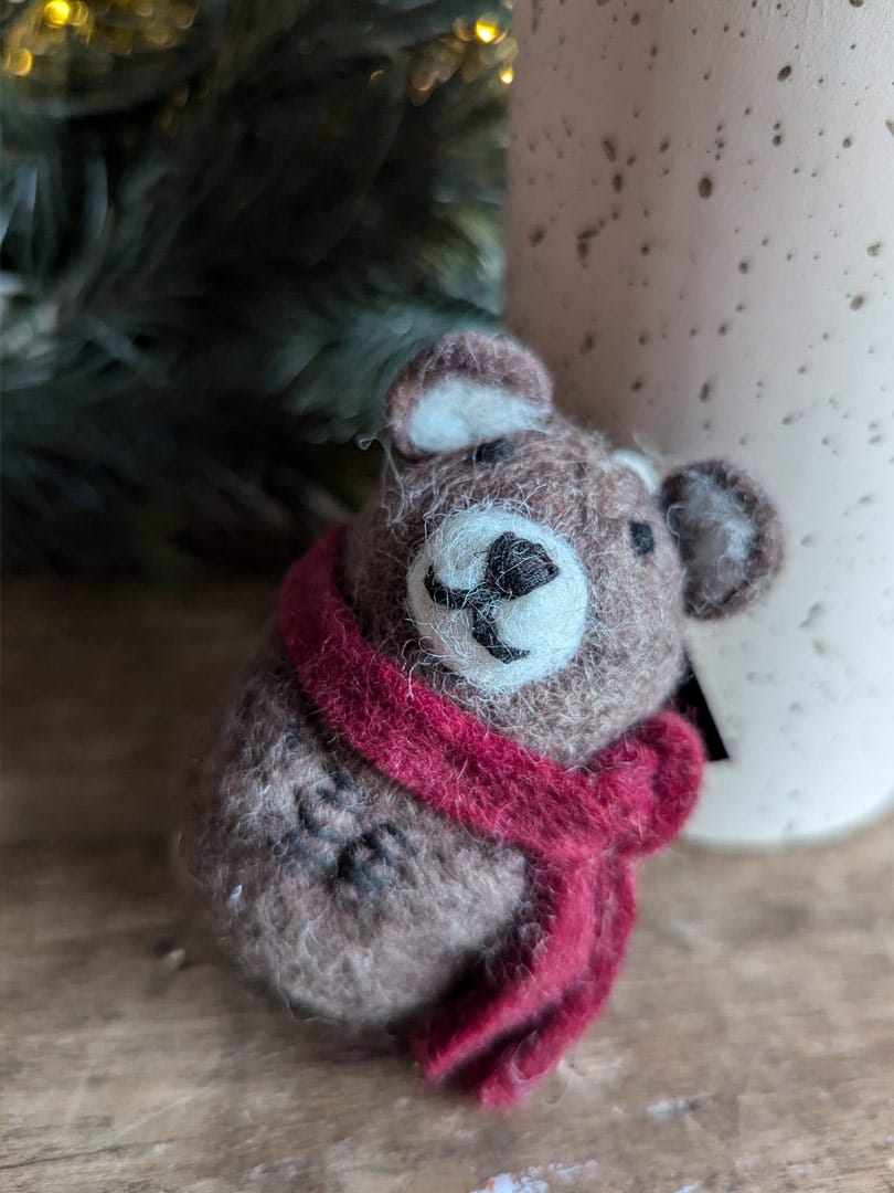 Chaque pièce est soigneusement fabriquée à la main, à partir de laine feutrée, dans le respect des traditions artisanales népalaises. Cet ours brun avec écharpe décore votre sapin de Noël, embellit une chambre d’enfant, ou apporte simplement sa note douce et ludique à n’importe quelle pièce.
