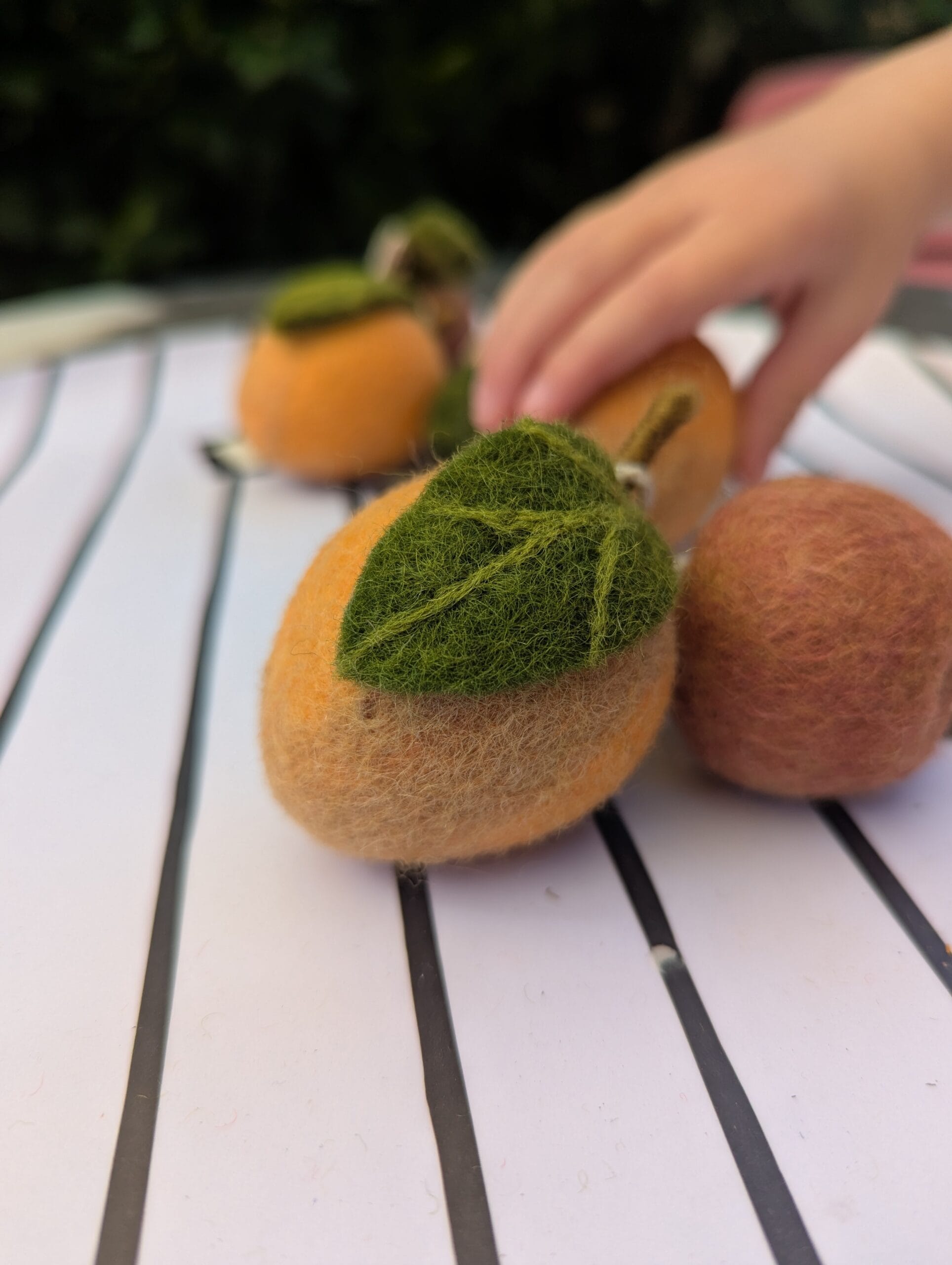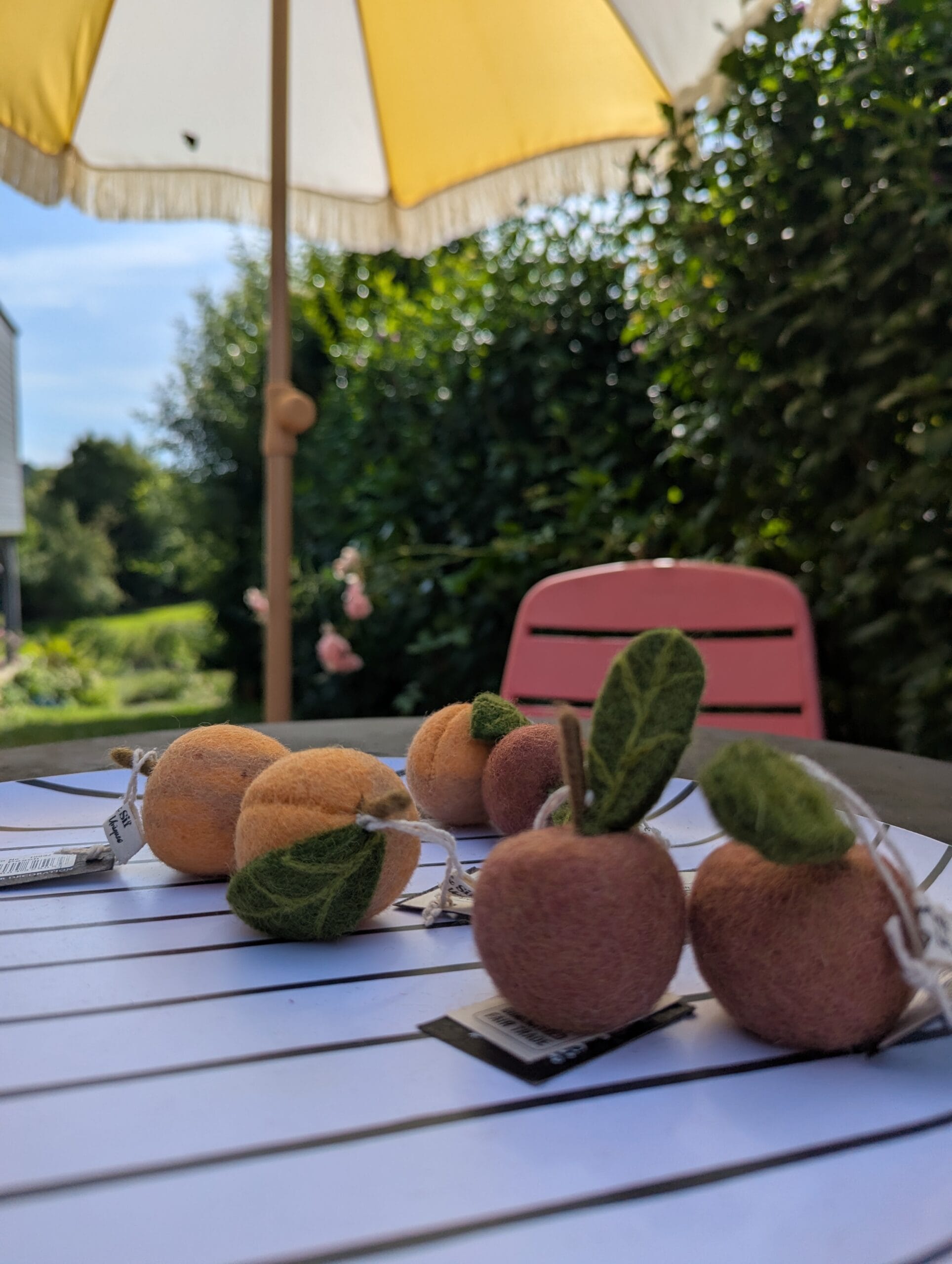 À accrocher à une poignée de meuble, à une branche naturelle, à une couronne suspendue ou un sapin de Noël, cette pêche en feutre trouve sa place dans votre décor en toutes saisons. Elle trouve aussi bien sa place dans une chambre d’enfant que dans une déco de table estivale avec son style minimaliste et naturel.