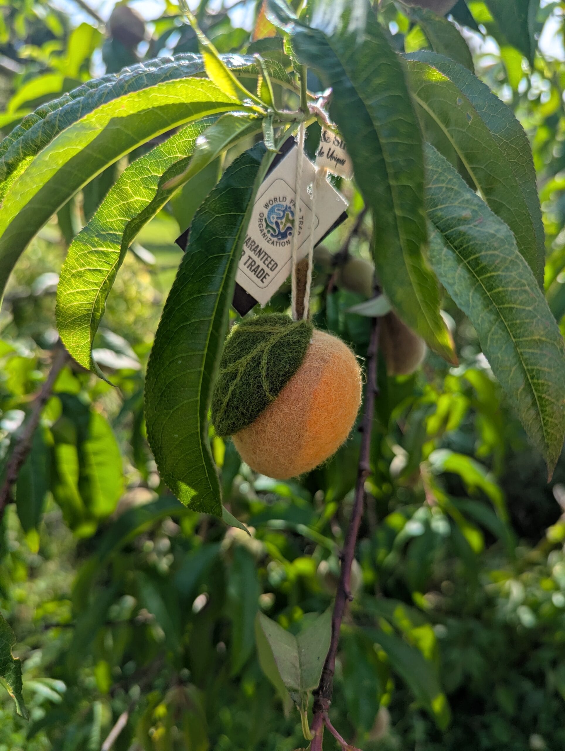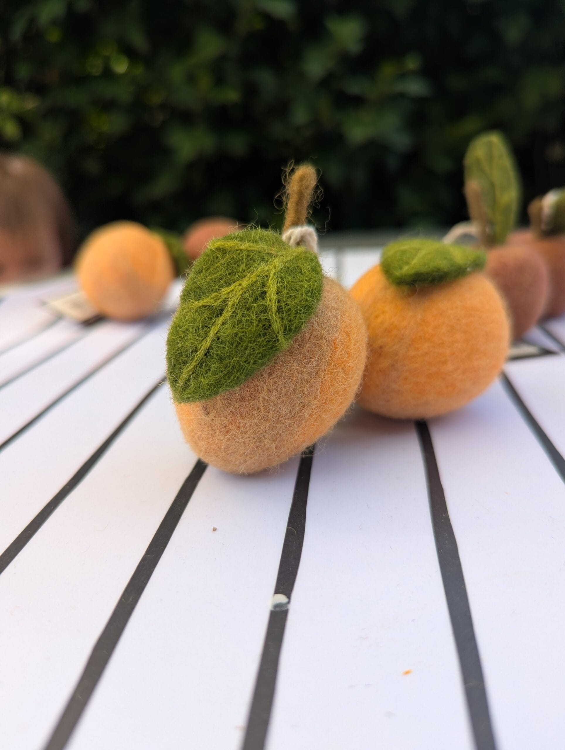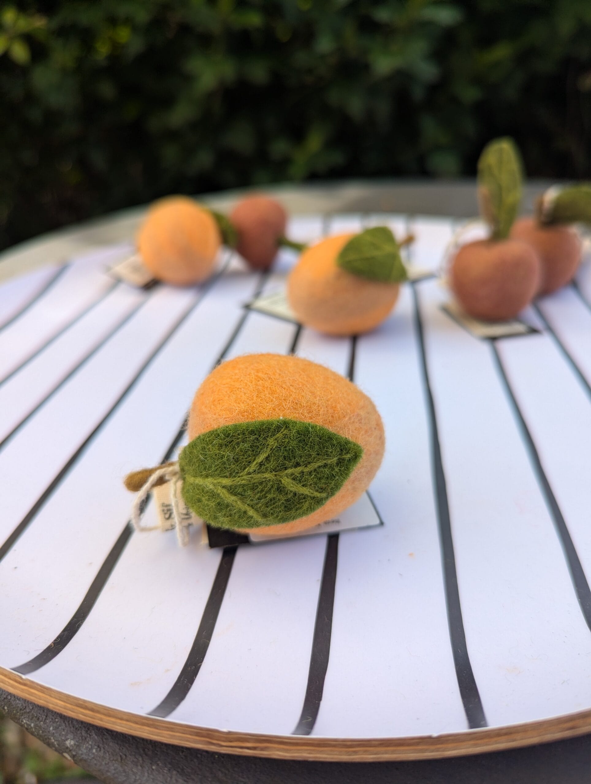 Chaque petite pêche en feutre à suspendre est soigneusement confectionnée à la main par des artisanes népalaises, selon un savoir-faire ancestral. La laine est feutrée avec précision pour créer une forme généreuse, douce au toucher, avec des finitions délicates. Le résultat ? Un objet décoratif unique, chaleureux, qui respire l’authenticité.