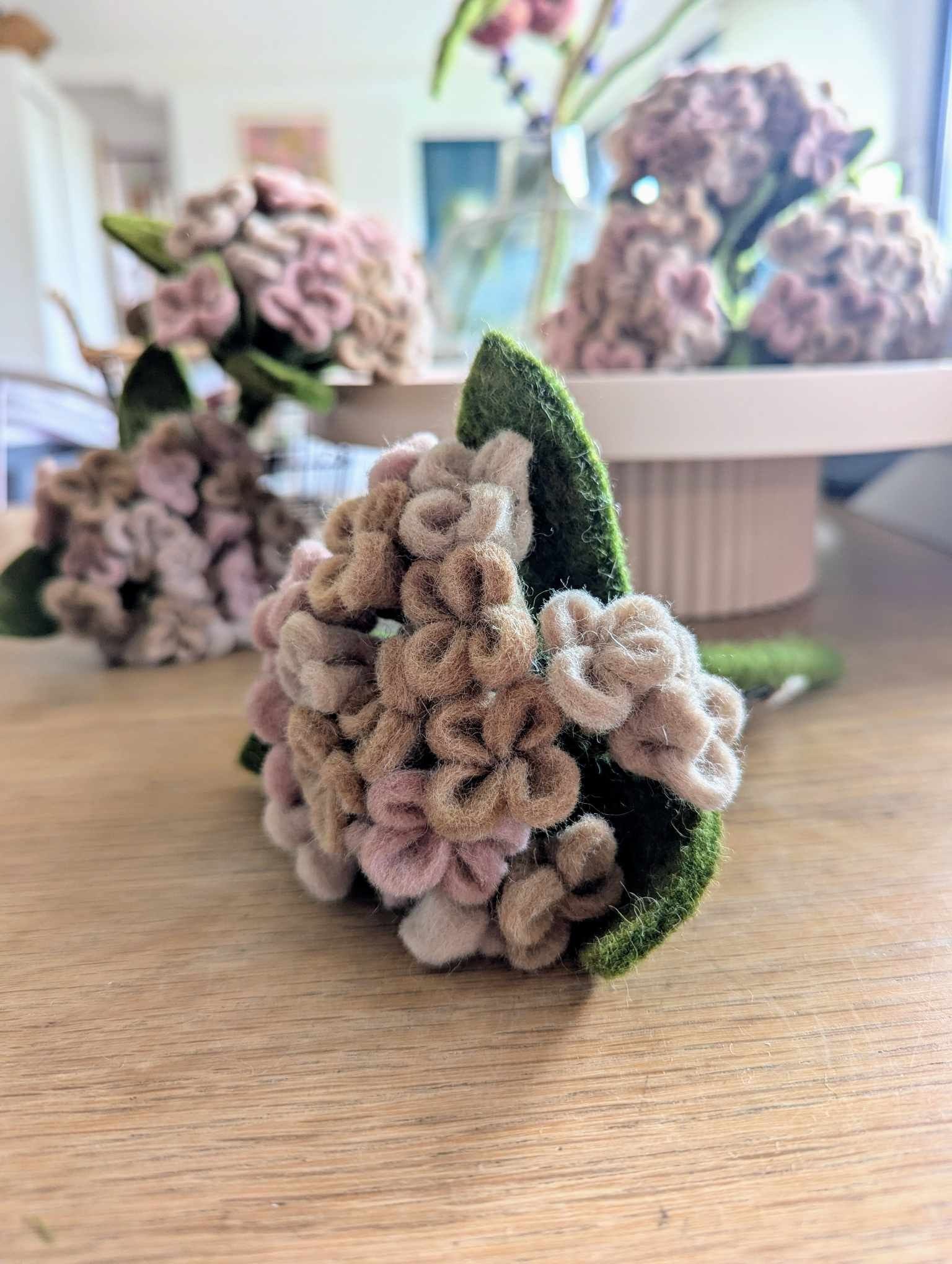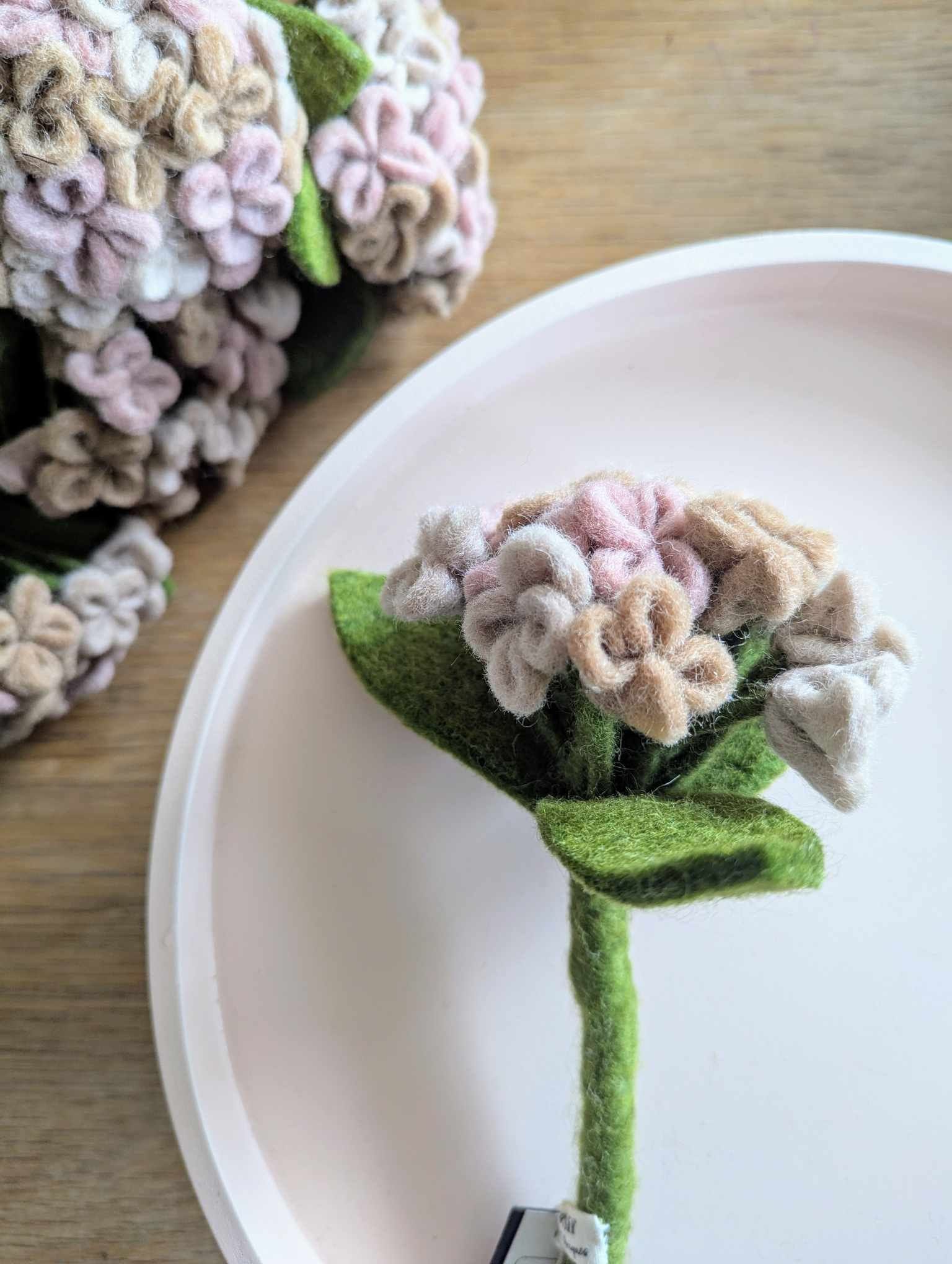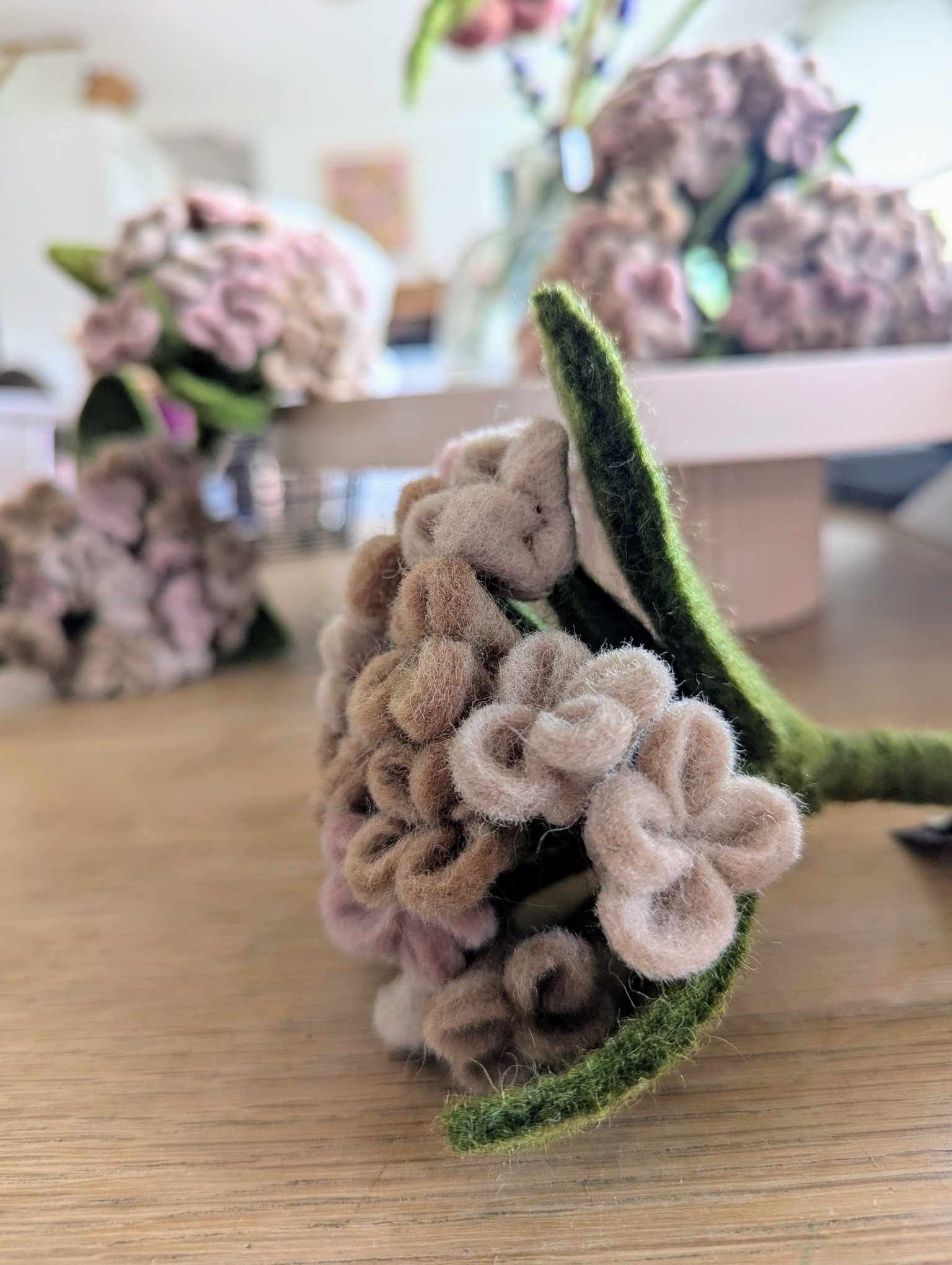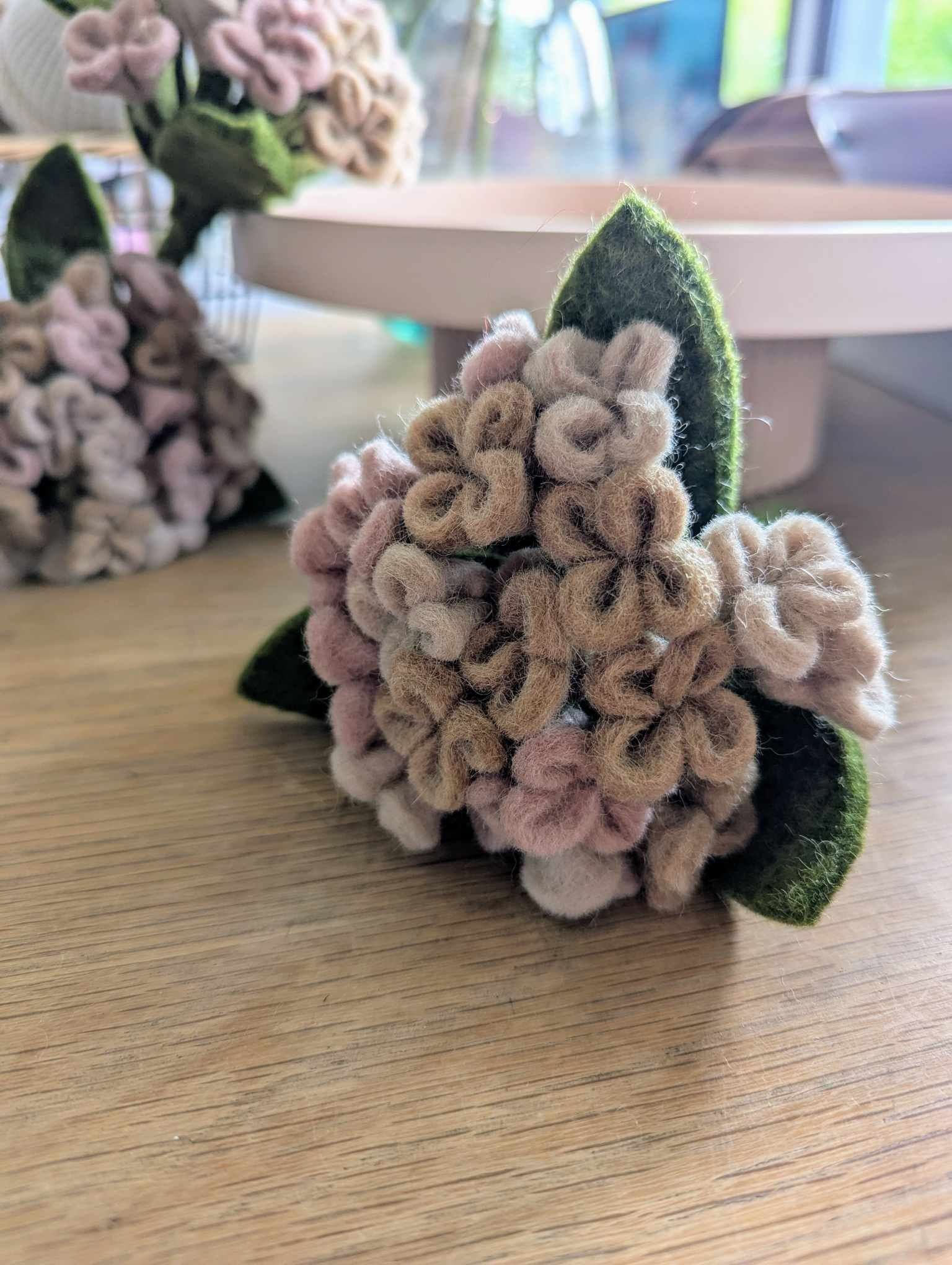 Douce et poétique, le petit hydrangea rose en feutre Gry & Sif est une création florale pleine de délicatesse. Inspirée des hortensias en fleurs, elle apporte une touche colorée et romantique à vos compositions florales en feutre, tout en s’inscrivant dans une démarche artisanale et éthique.