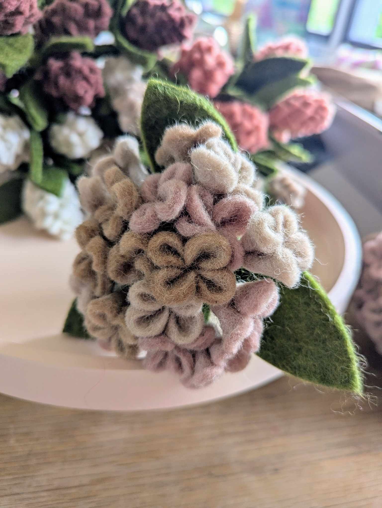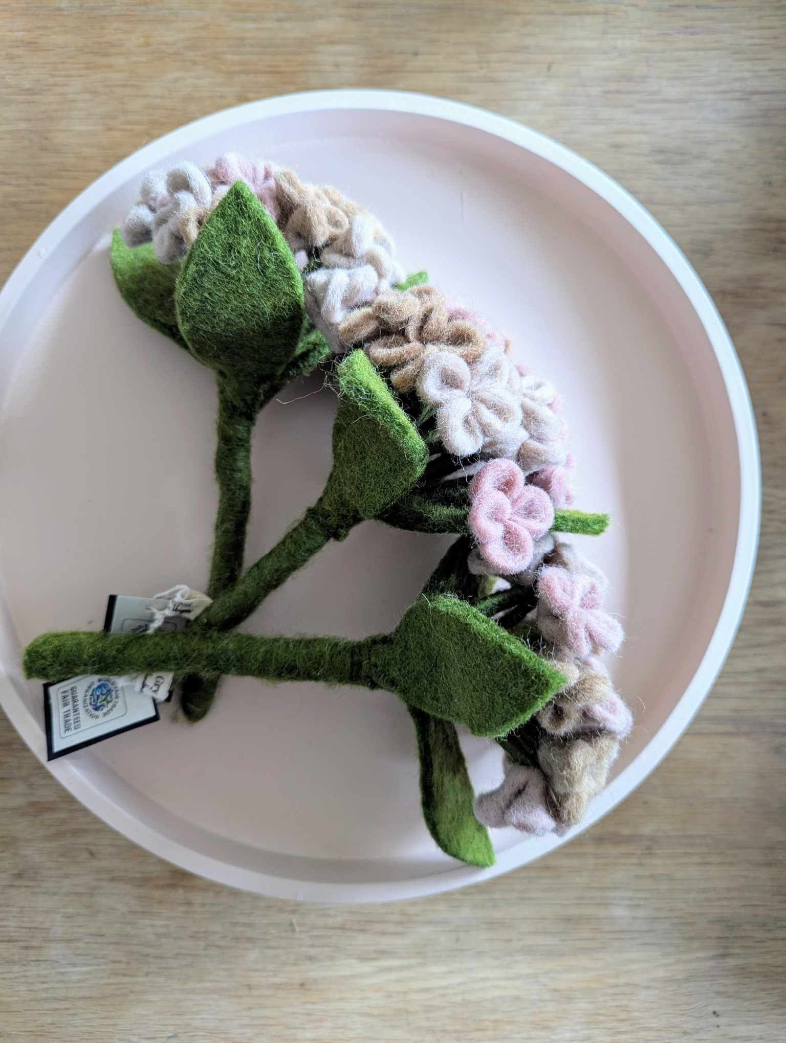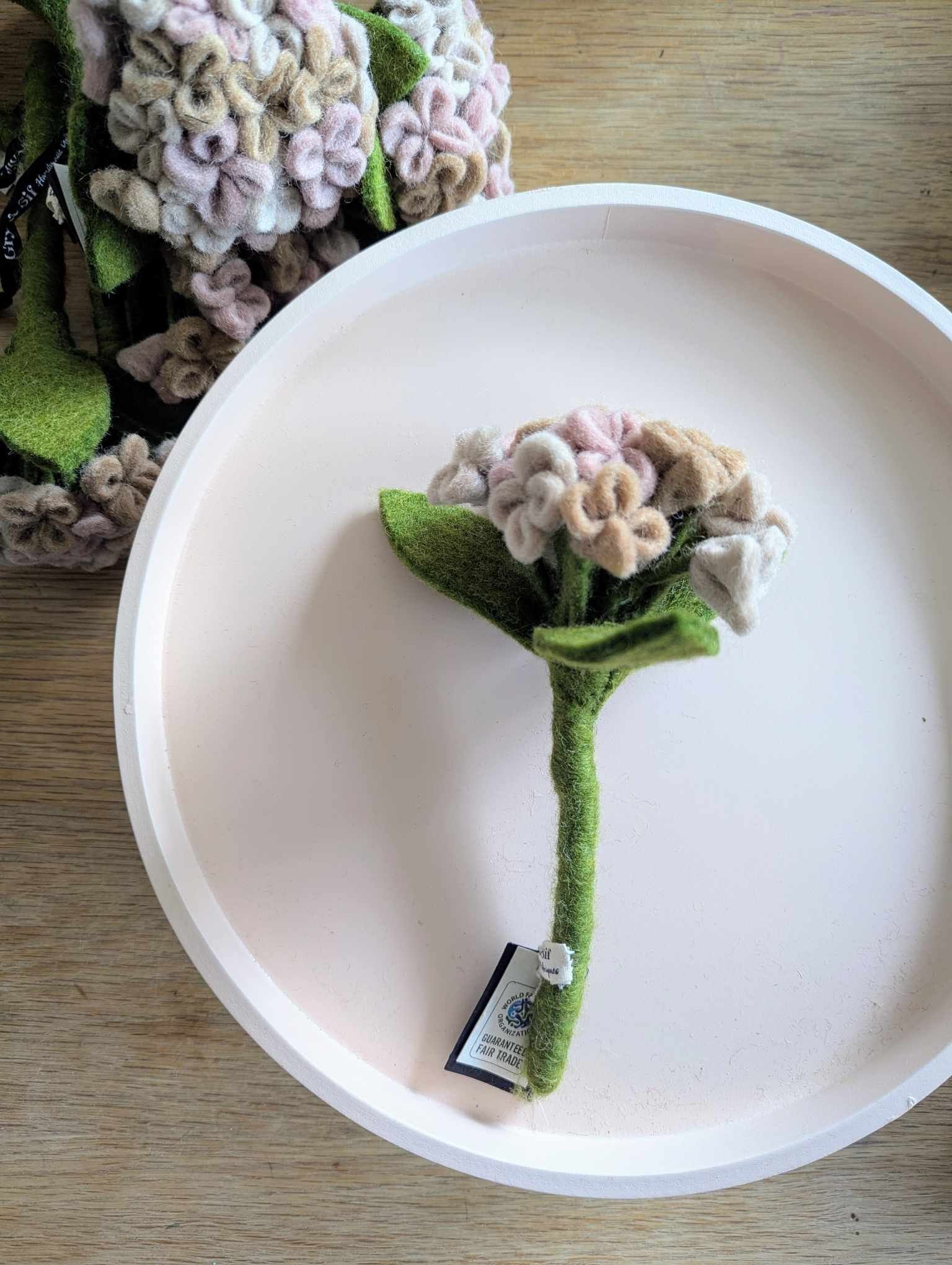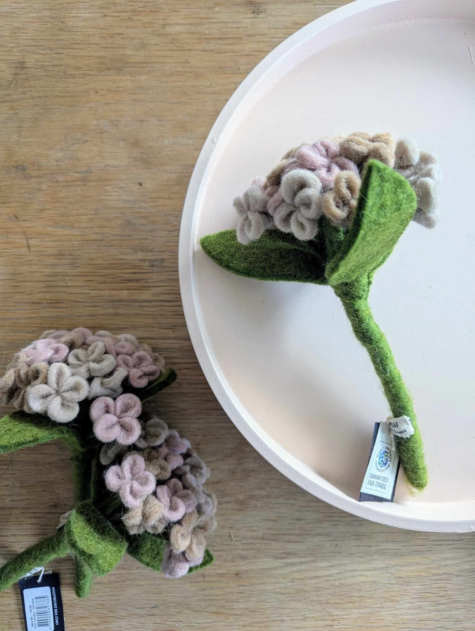 Douce et poétique, le petit hydrangea rose en feutre Gry & Sif est une création florale pleine de délicatesse. Inspirée des hortensias en fleurs, elle apporte une touche colorée et romantique à vos compositions florales en feutre, tout en s’inscrivant dans une démarche artisanale et éthique.