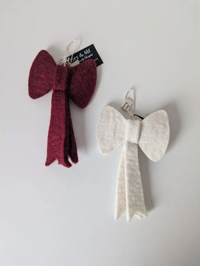 Un petit nœud en feutre de laine à suspendre pour Noël