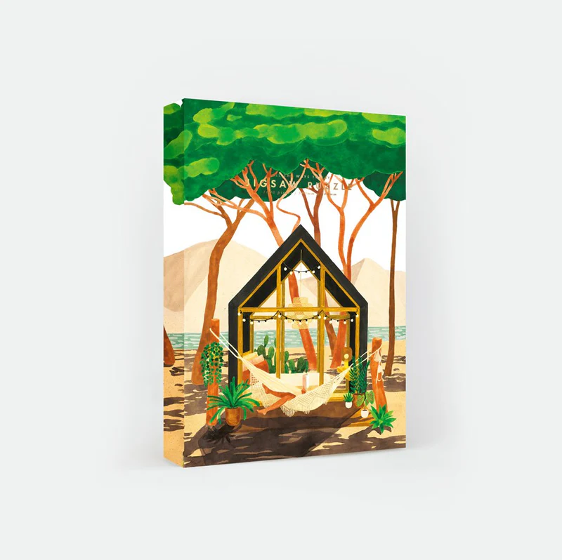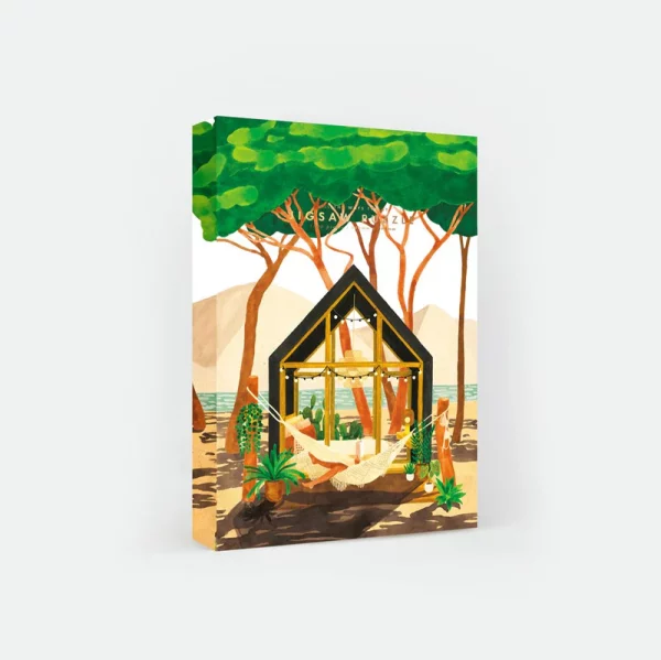 Le puzzle Cap Ferret d’All the ways to say compte un total de 1 000 pièces. Celles-ci s’assemblent pour former une illustration évocatrice dans un style réconfortant, coloré et foisonnant. Quelques pins typiques, de grandes dunes et un horizon maritime nous transportent en un coup d’œil dans le Sud-Ouest.