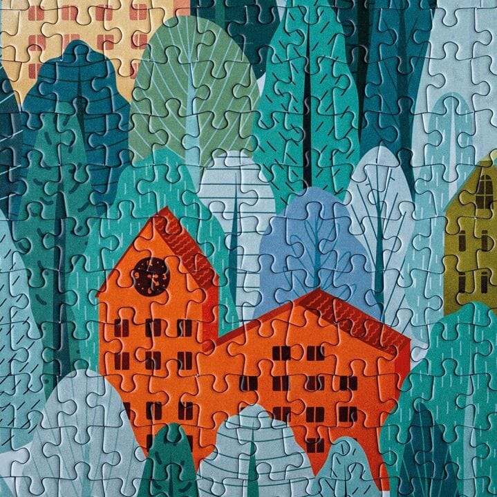 Puzzle 500 pièces, Du vent dans les cimes, maison Joliette, forêt turquoise et orange.Puzzle 500 pièces Du vent dans les cimes – Maison Joliette