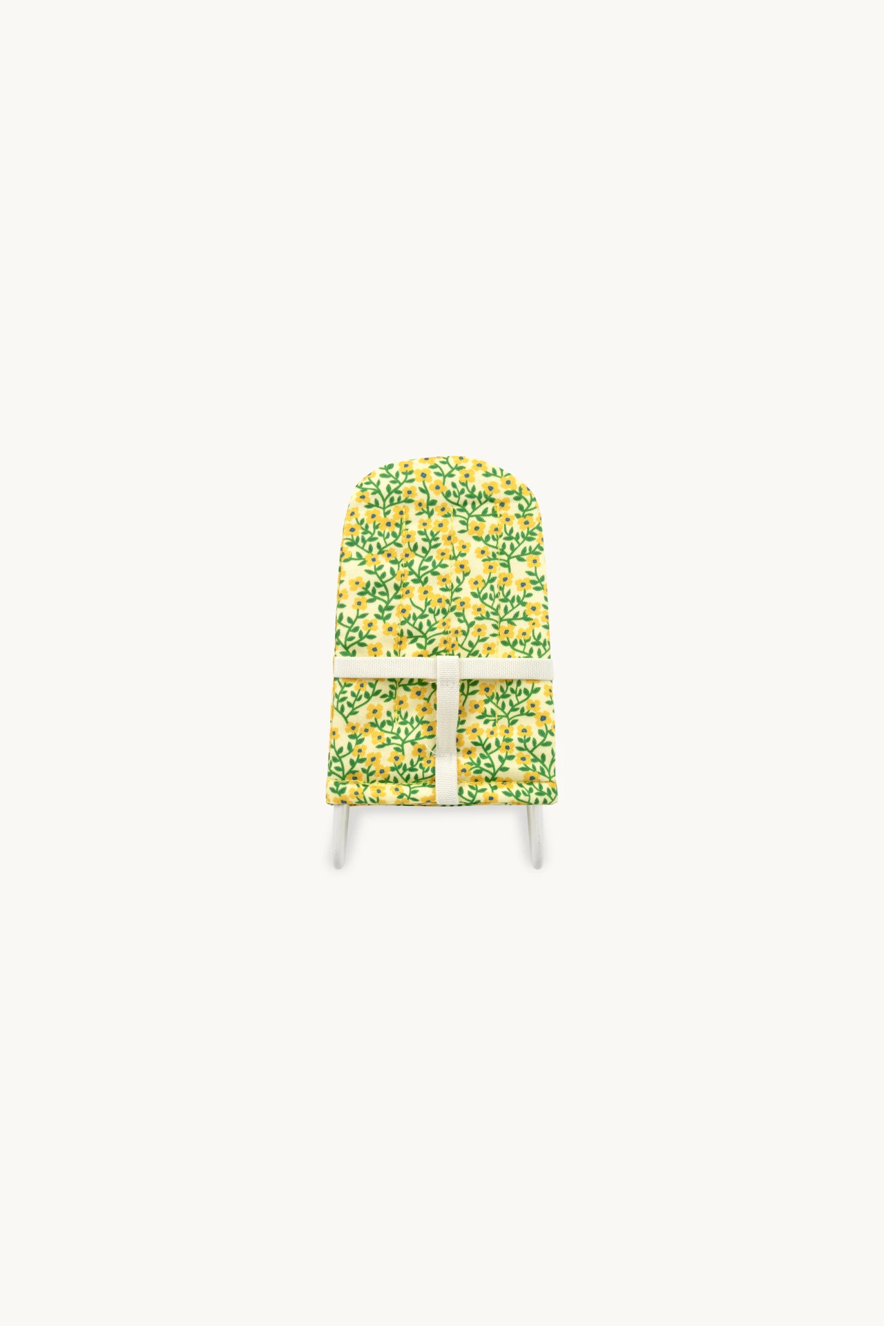 La structure du transat en fer est recouverte d’une peinture blanche, sans PVC ni BPA. L’intérieur est habillé d’un tissu en coton doux, orné d’un motif Liberty jaune et vert. Il est possible de compléter le petit monde de votre Gommu Pocket, avec les autres accessoires Liberty, comme la pochette de transport, la poussette et le berceau.