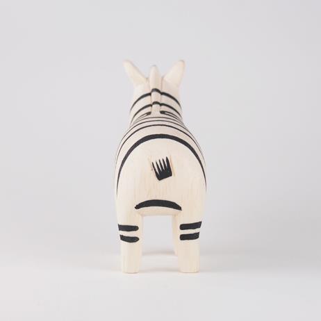 Déposé seul sur le coin d’un bureau, ou au milieu d’une collection bien fournie, ce zèbre lisse et doux contribue à la création d’une atmosphère intérieure apaisante et rassurante. La teinte naturelle du bois, combinée à une peinture noire élégante, en font une pièce totem intemporelle.